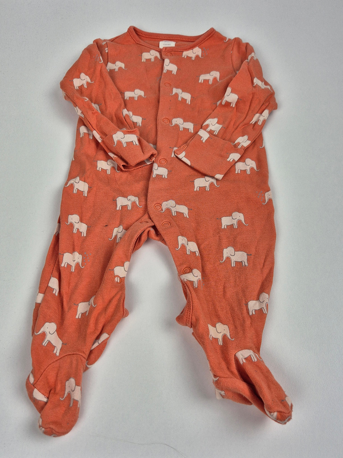 Roztomilé dupačky značky John Lewis ve velikosti 62/68. Základní barva je cihlově oranžová s potiskem sloníků po celé ploše. Díky celopropínacímu zapínání se snadno oblékají a jsou pohodlným kouskem na spaní i hraní. Hodí se pro holčičky i chlapečky.