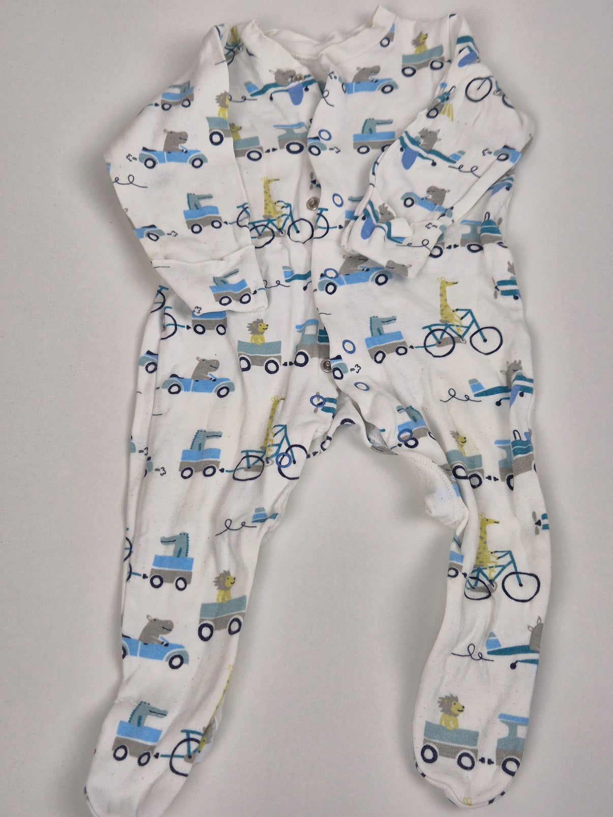 Veselé dupačky Marks & Spencer v bílé barvě s potiskem zvířátek na kolech a v autíčkách zaujmou na první pohled. Praktické zapínání na patentky po celé délce usnadňuje přebalování i oblékání. Měkoučký materiál a uzavřená chodidla zajistí pohodlí i teplo. Skvělý kousek pro kluky na spaní i lenošení doma.