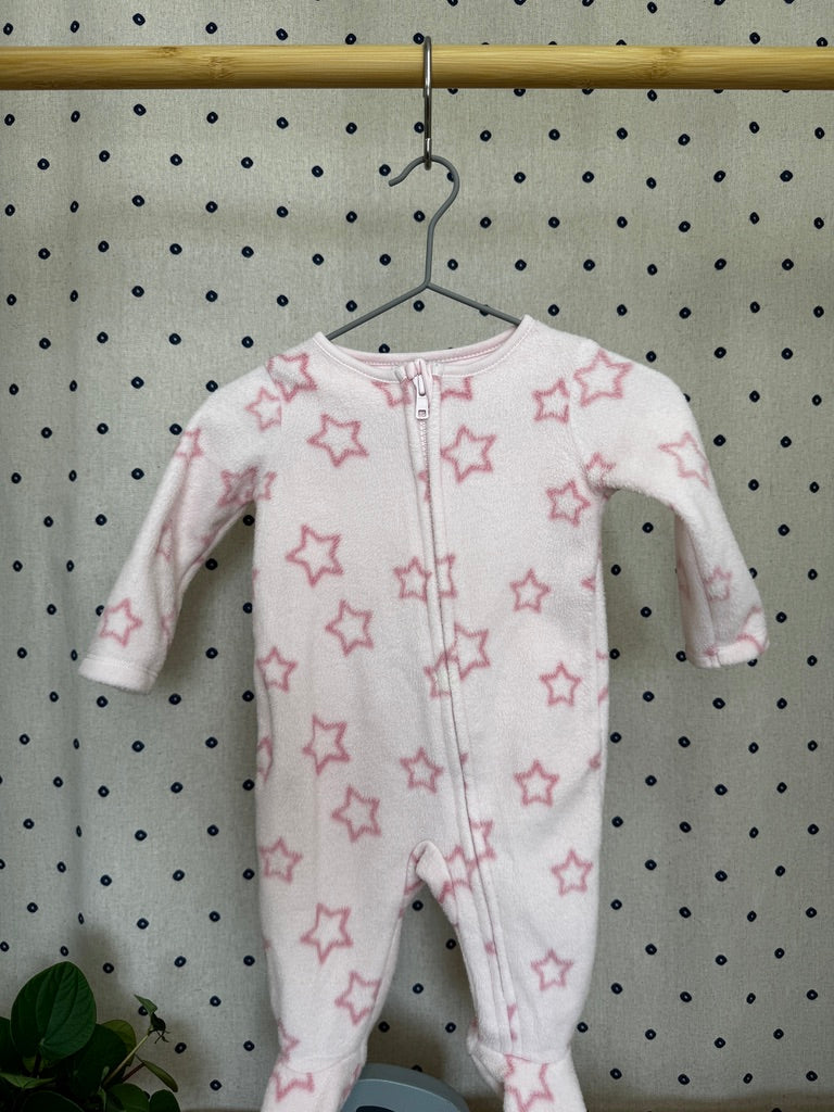 Měkoučké fleecové dupačky značky F&F ve velikosti 68 jsou ideální volbou pro chladnější dny. Jemná růžová barva s hvězdičkovým motivem přidává dupačkám hravý a roztomilý vzhled. Praktické zapínání na zip...
