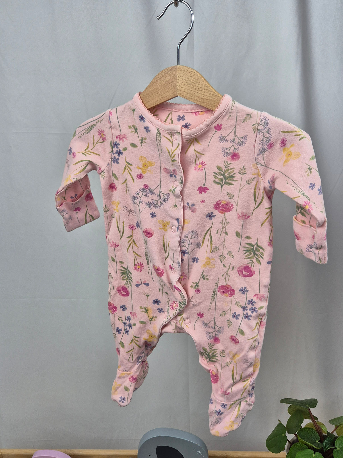Roztomilé květinové dupačky značky Mothercare ve velikosti 62 jsou ideální volbou pro malé princezny. Jemný růžový podklad doplněný veselým květinovým vzorem působí něžně a hravě. Praktické zapínání po celé délce usnadňuje oblékání i přebalování, zatímco měkký, prodyšný materiál zajistí maximální pohodlí při nošení. Dupačky jsou zakončené uzavřenými nožičkami, které udrží nožky miminka v teple. Perfektní volba na každodenní nošení doma i pro odpočinek v kočárku.