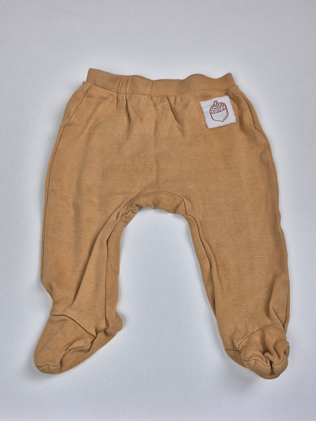 Jednoduché a pohodlné polodupačky Pepco v krásném teplém karamelovém odstínu. Měkký bavlněný materiál je příjemný na celodenní nošení, integrované ťapky udrží nožičky v teple a pružný pas se pohodlně přizpůsobí bříšku. Decentní nášivka s žaludem dodává kousku jemný přírodní nádech.
