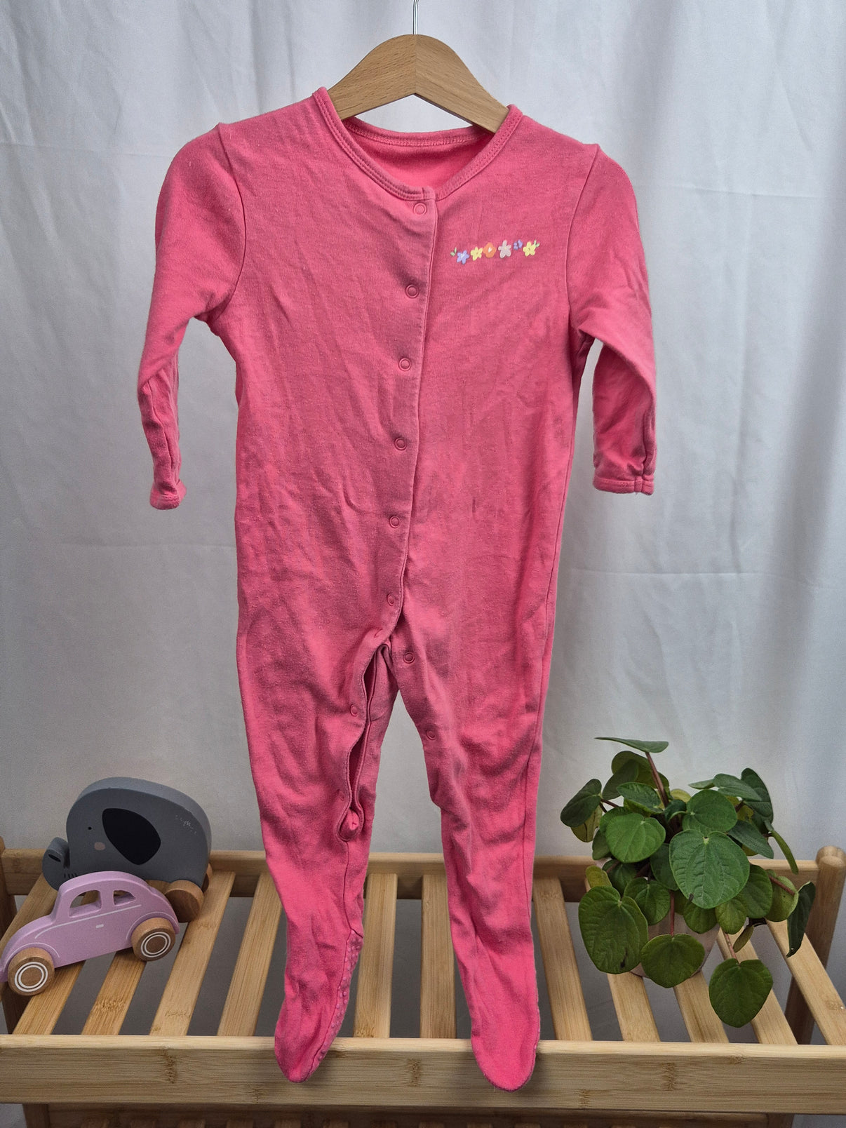 Roztomilé růžové dupačky od značky Primark s něžným potiskem květin na hrudi. Pohodlný střih s integrovanými ťapkami a protiskluzovou úpravou zajistí bezpečné první krůčky i klidný spánek. Praktické zapínání na druky po celé délce usnadňuje oblékání a přebalování. Měkký materiál poskytne miminku maximální komfort. Ideální volba pro sladké sny i pohodové dny! 🌸💖