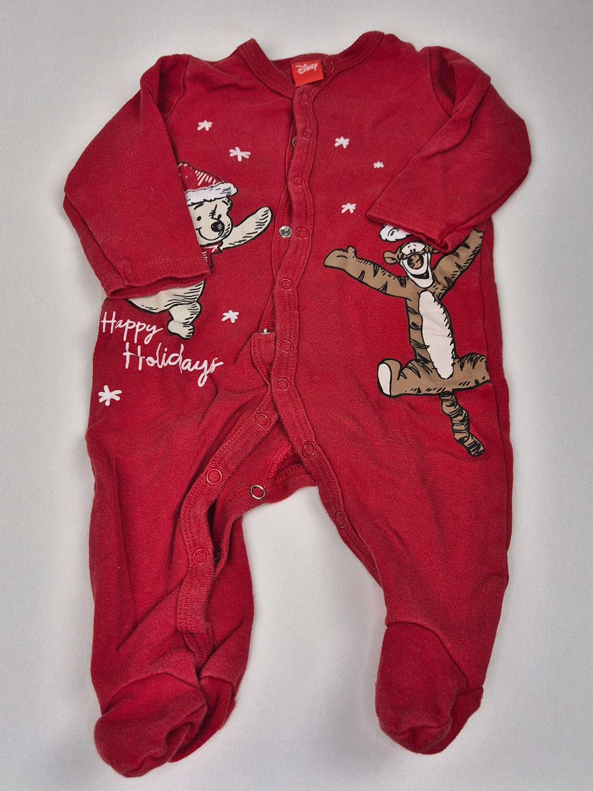 Tyto vánoční dupačky značky Pepco ve velikosti 68 jsou v červené barvě a zdobí je potisk Medvídka Pú a Tygra v čepicích Santy s nápisem Happy Holidays. Mají integrované nožičky a zapínání na patentky po celé délce, takže jsou praktické a ideální na sváteční období.