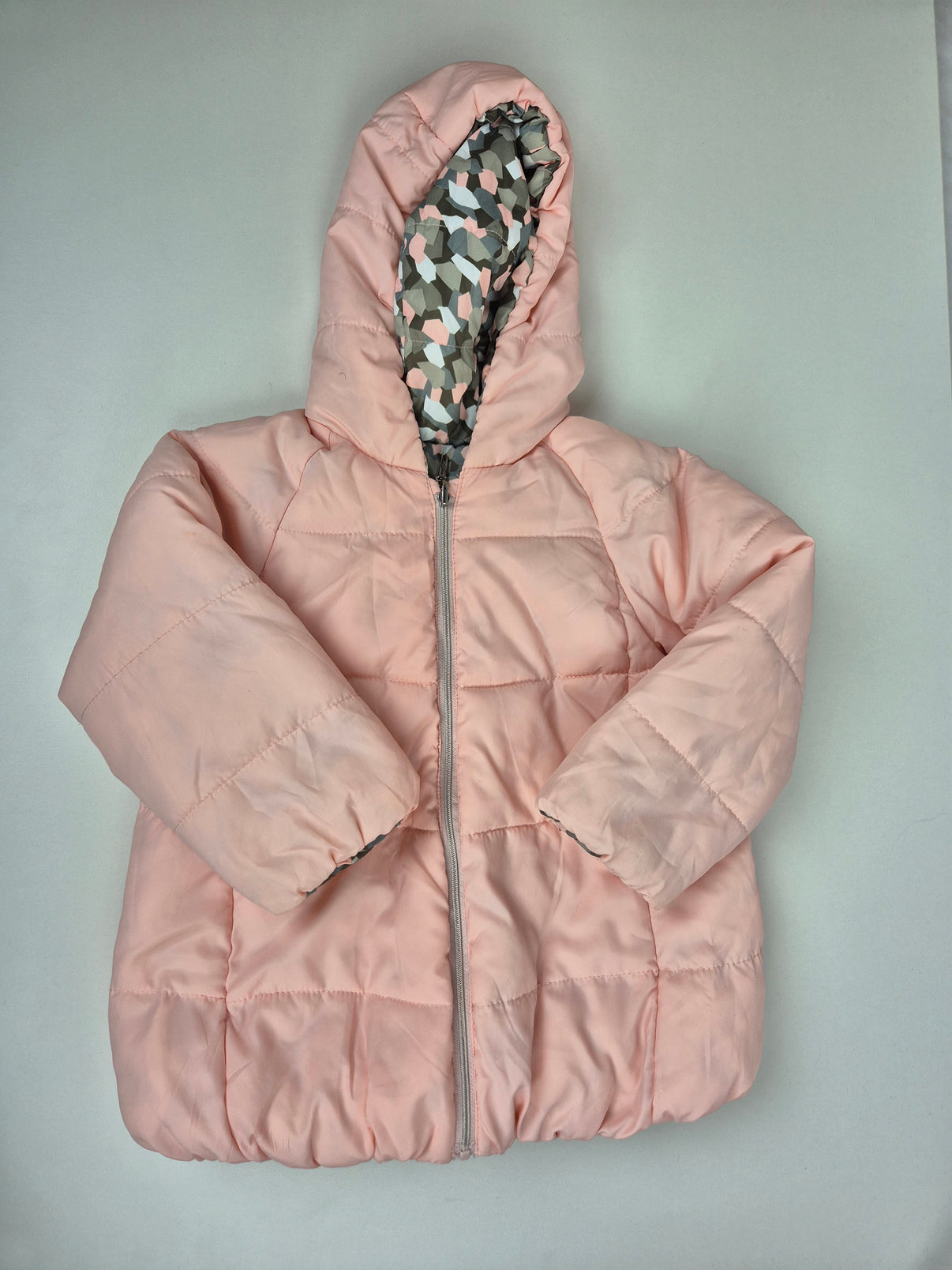 Lehká, praktická a oboustranná – tahle bunda značky Mayoral nabídne dva různé vzhledy v jednom kousku. Z jedné strany jemně pudrově růžová, z druhé strany hravý geometrický vzor v kombinaci starorůžové, šedé, khaki a bílé. Barevnost je jemná, ale zároveň dostatečně výrazná pro každodenní nošení.
