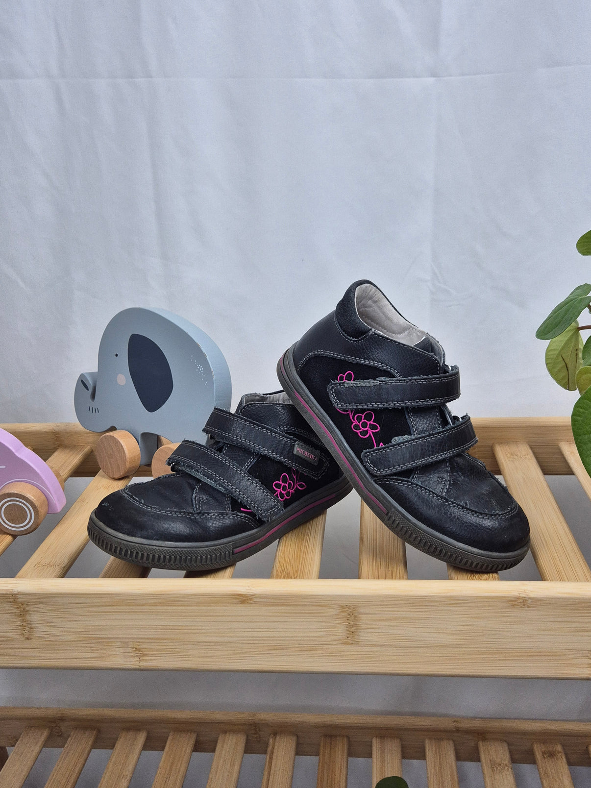 Praktické kotníkové boty pro holky od značky Protetika ve velikosti 30. Černé provedení doplňují růžové detaily v podobě květinového motivu a proužku na podrážce, které dodávají botám stylový vzhled. Zapínání...