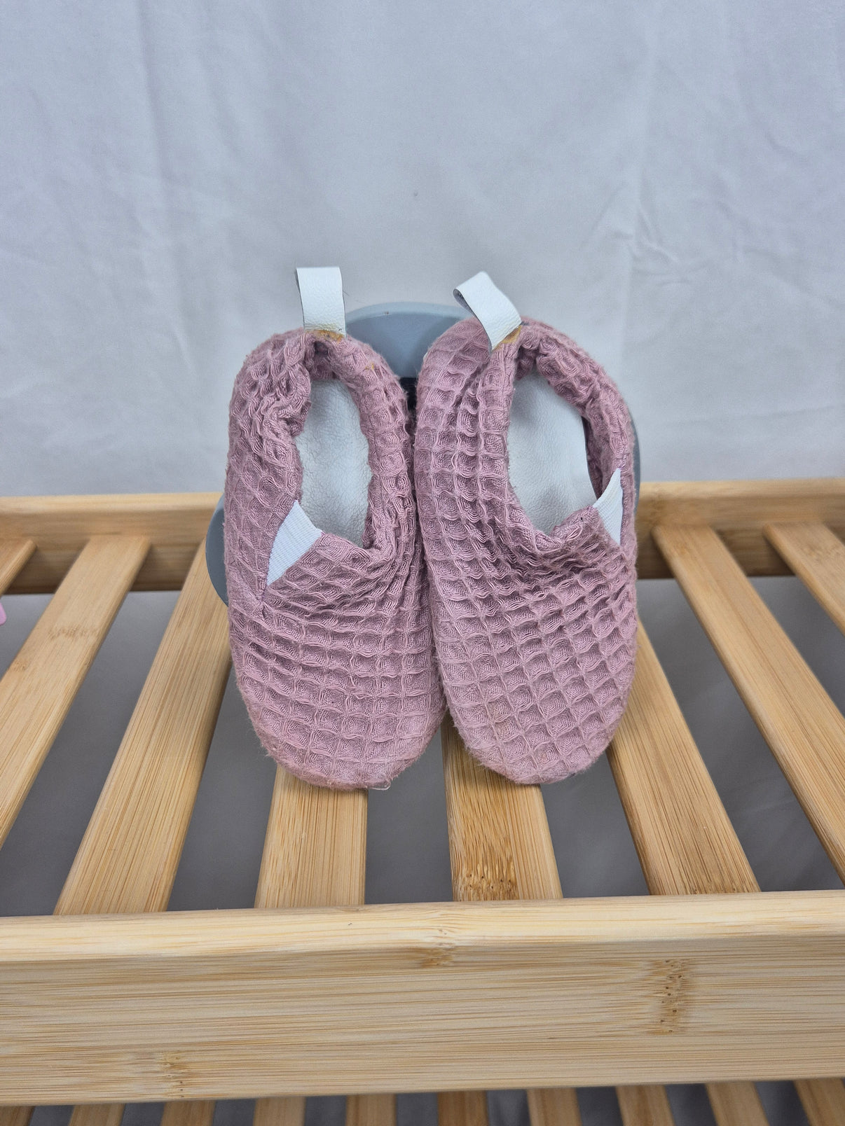 Roztomilé růžové bačkůrky ve velikosti 12-18 měsíců jsou perfektní volbou pro malé nožky. Vyrobené z měkkého vaflového materiálu, který je příjemný na dotek a zároveň prodyšný. Elastický lem a poutko...