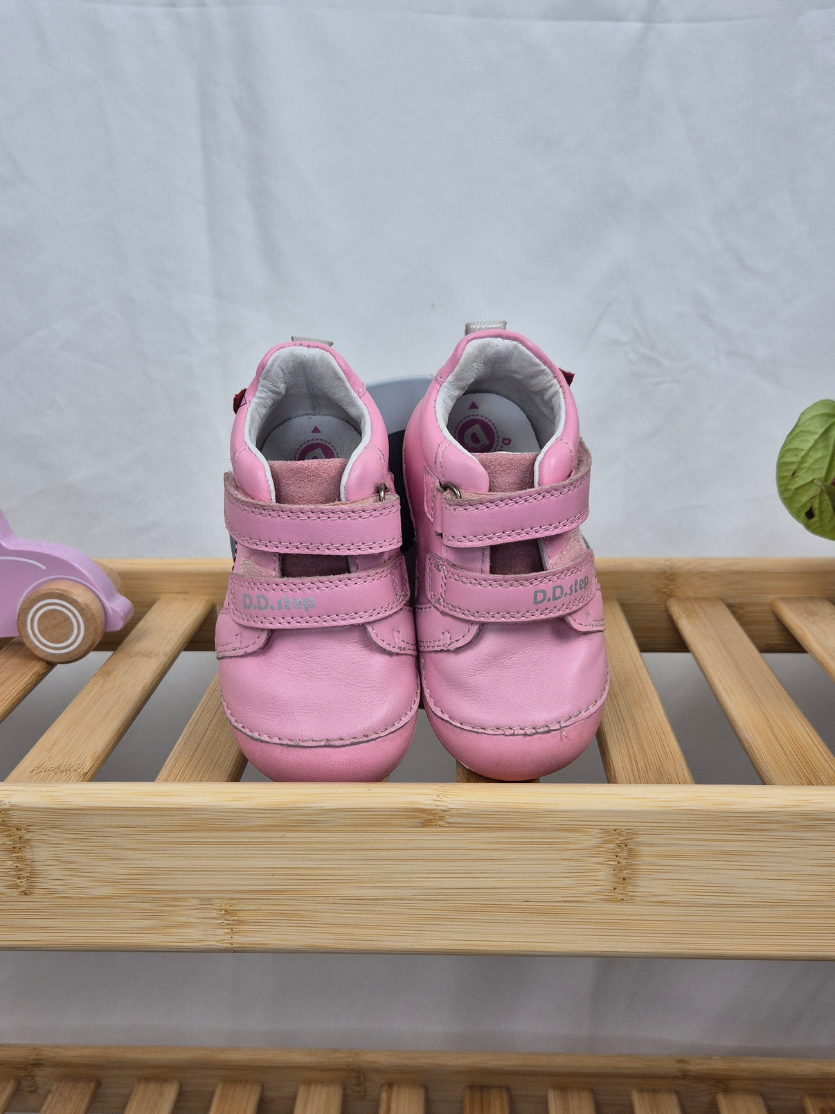 Anatomický tvar podporuje správný vývoj chodidla, zatímco flexibilní podrážka poskytuje stabilitu a bezpečnost při chůzi. Jemná růžová barva s decentním logem D.D.Step dodává botám elegantní vzhled, který se snadno kombinuje s různými outfity.