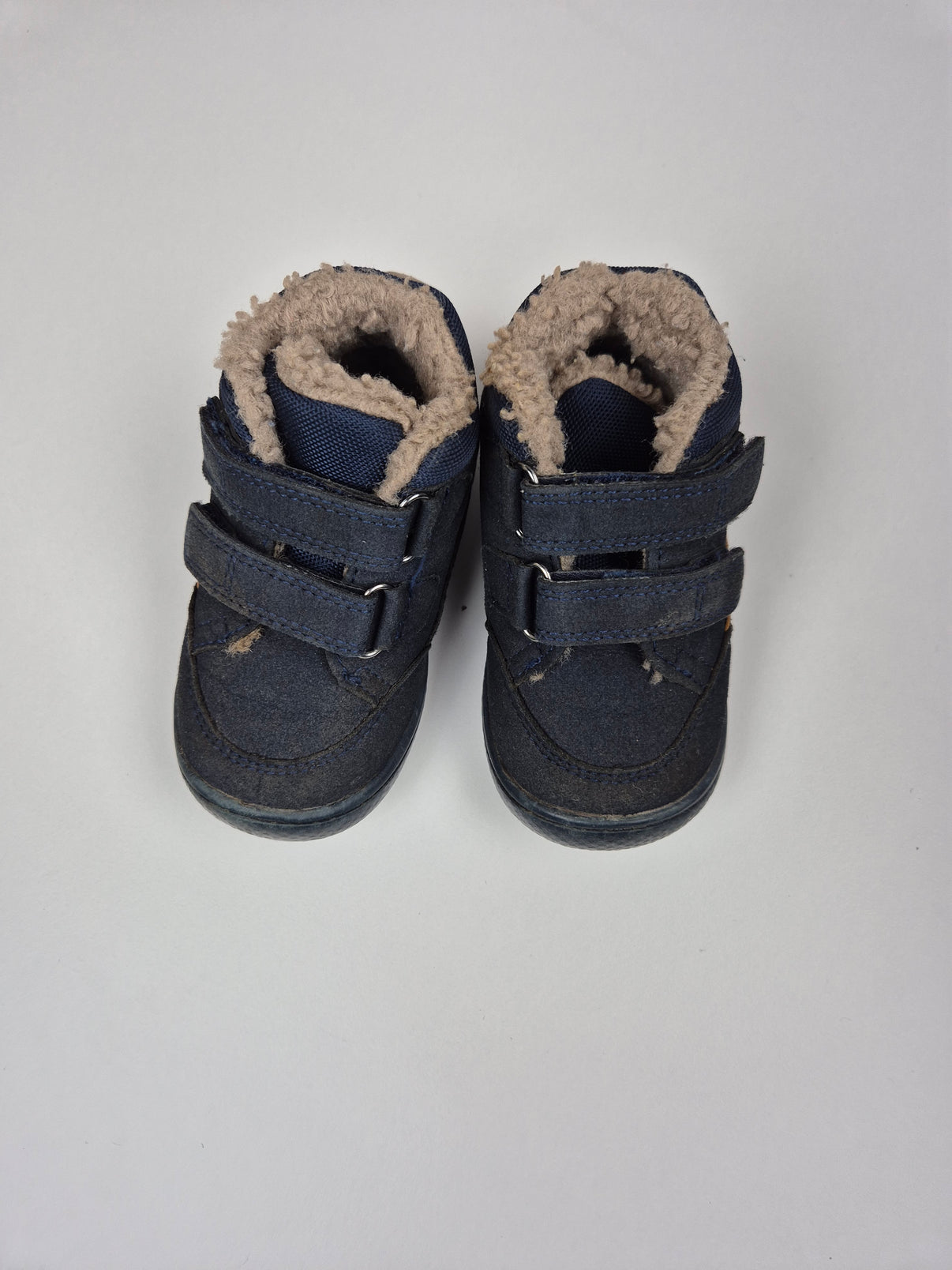Pohodlná kotníková obuv pro malé nožky, ideální do chladnějších dnů. Boty jsou v tmavě modré barvě s jemným hnědým detailem, který jim dodává hezký, klučičí vzhled. Vnitřek je zateplený měkkým kožíškem, takže nožky zůstanou v teple i při delších procházkách.