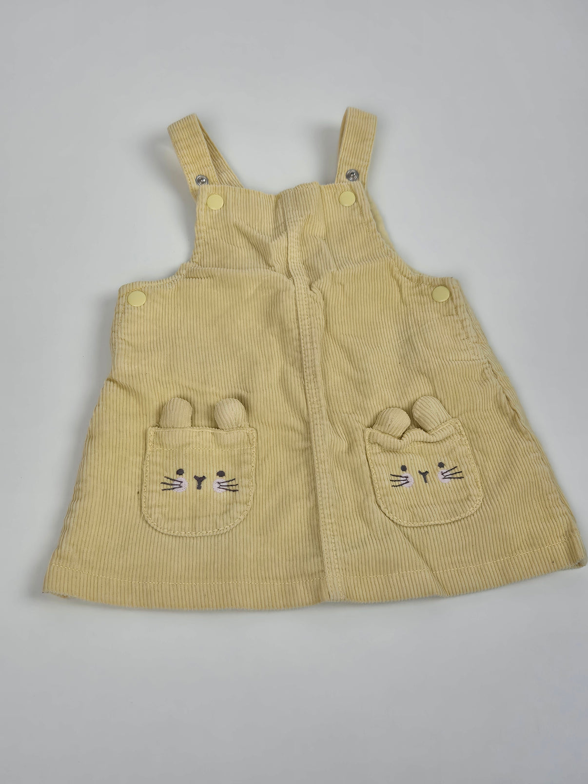 Roztomilé manšestrové šatičky značky Tu ve velikosti 62/68. Světle žlutý manšestr působí vesele a hravě, na přední straně jsou kapsičky s vyšitými obličejíčky a malými oušky, které dodávají šatičkám originální...