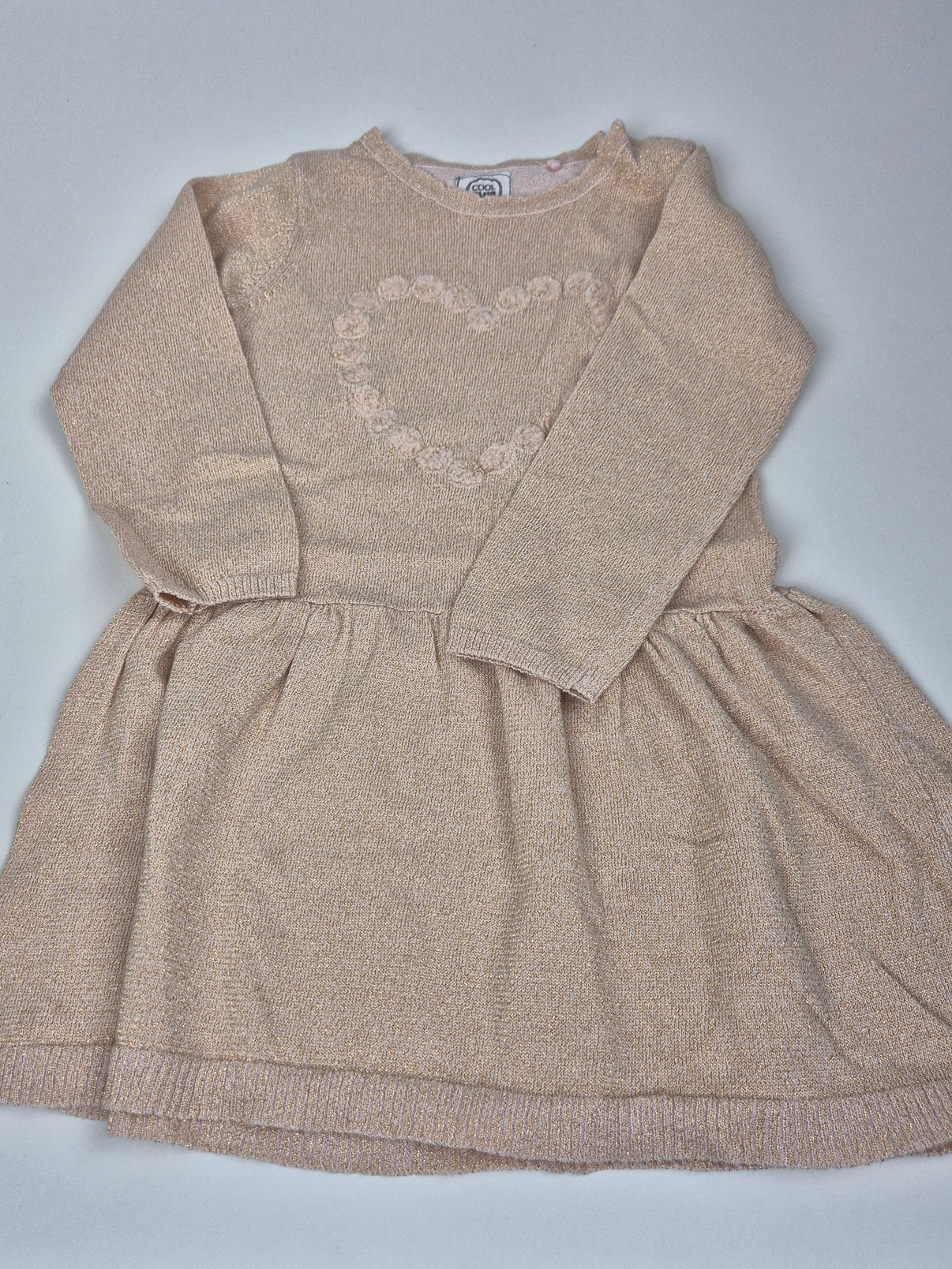 Tyto dívčí šaty značky Cool Club ve velikosti 92 mají krásný světle růžový odstín se zlatavým leskem. Na hrudi je zdobí jemné srdíčko z kvítků, které dodává romantický vzhled. Dlouhý rukáv a příjemný materiál se hodí na podzimní i zimní období. Šaty jsou ideální pro slavnostní příležitosti, ale i pro běžné nošení, když chce malá parádnice zazářit.