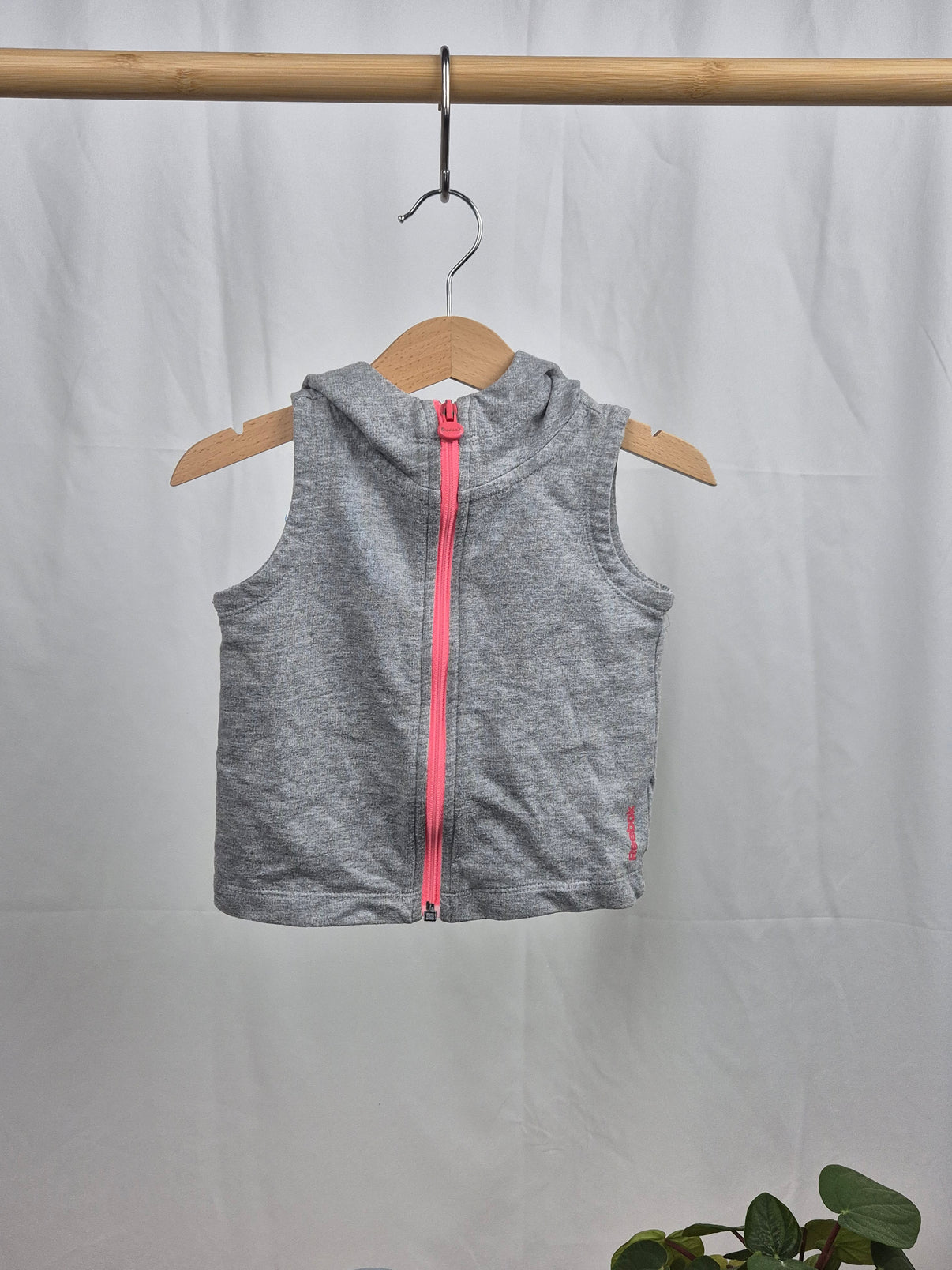 Stylová šedá vesta s kapucí od značky Reebok ve velikosti 68/74, ideální pro malé sportovce. Jednoduchý a univerzální design je doplněn výrazným růžovým zipem, který vestě dodává moderní vzhled. Vesta je vyrobena z příjemného a lehkého materiálu, který je pohodlný na nošení. Kapuce poskytuje dodatečnou ochranu proti větru a chladu, což ji činí ideální volbou pro přechodné období. Hodí se pro holčičky na běžné nošení i na sportovní aktivity. Praktická a stylová volba do dětského šatníku!