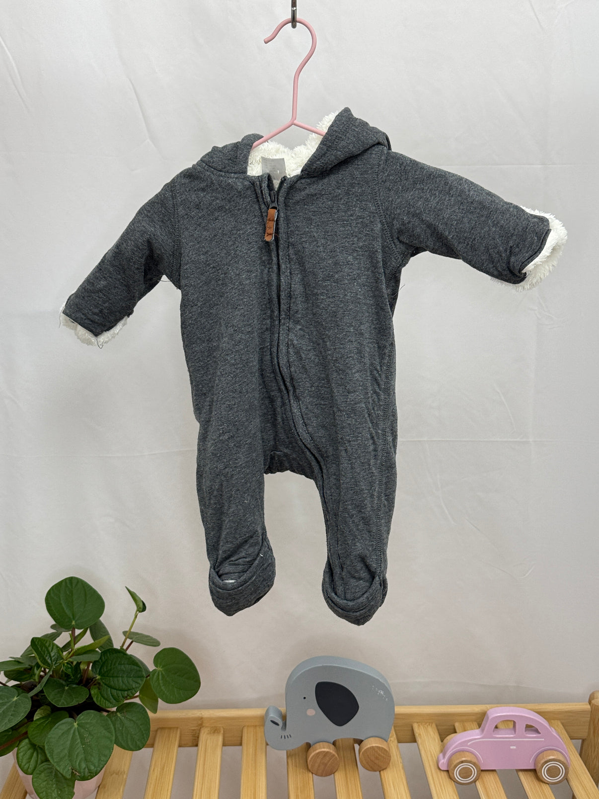 Tmavě šedá tepláková kombinéza H&M ve velikosti 50 je perfektní volbou pro novorozence, kteří potřebují maximální pohodlí a teplo. Měkký vnitřní chloupek zajistí příjemný pocit na pokožce a zahřeje i v chladnějším počasí. Kombinéza je vybavena kapucí a zipem pro snadné oblékání a svlékání. Skvělá volba pro venkovní procházky.