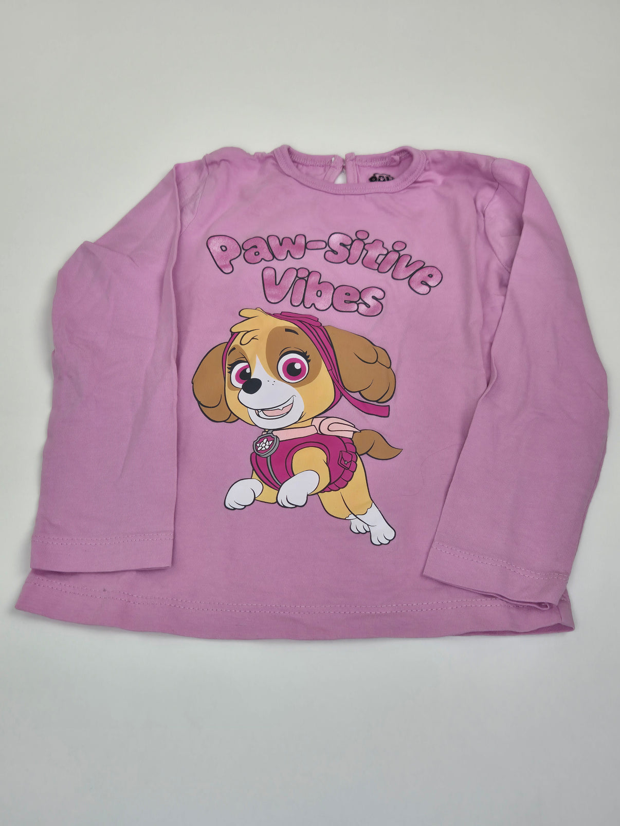 Roztomilé růžové tričko s dlouhým rukávem z kolekce Sinsay, zdobené oblíbenou Skye z Tlapkové patroly a nápisem „Paw-sitive Vibes“. Příjemný bavlněný materiál se pohodlně nosí a střih je ideální na každý den – do školky, na hraní i výlety. Motiv i barva jsou skvělé pro malou holčičku, která miluje Tlapkovou patrolu.