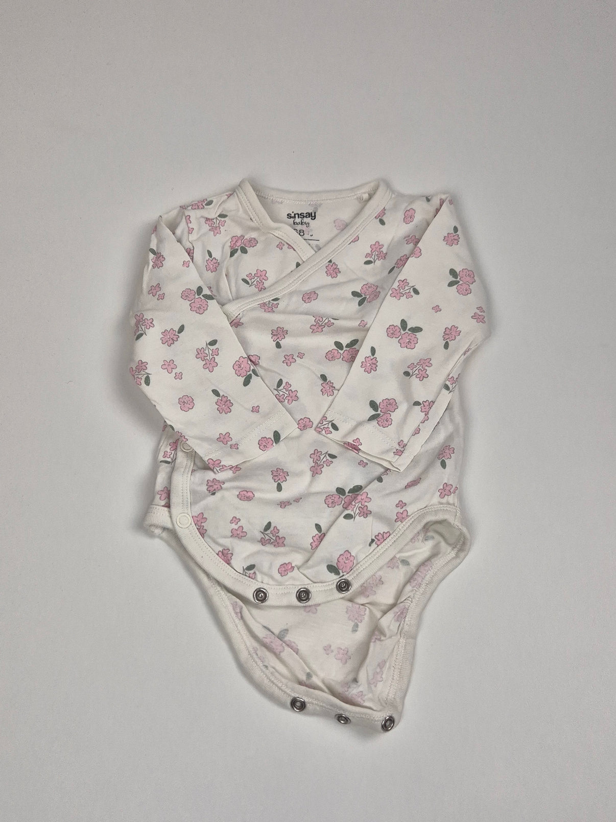 Zavinovací body Sinsay v jemné krémové barvě s celopotiskem růžových kytiček, ideální pro malou holčičku. Praktický zavinovací střih na patentky po celé délce usnadní oblékání i přebalování, což oceníš hlavně u menších miminek. Měkká bavlna je příjemná na pokožku a hodí se na každodenní nošení do kočárku i na doma. Roztomilý, pohodlný a praktický kousek do výbavičky.