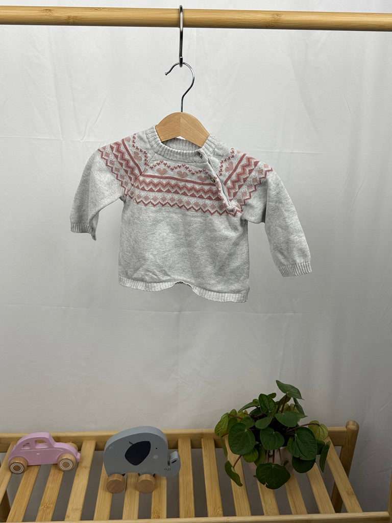 Pohodlný a stylový bavlněný svetr pro miminka od značky Tu ve velikosti 68. Světle šedý základ doplněný jemným norským vzorem v růžových tónech kolem ramen dodává svetru jedinečný vzhled. Praktické...