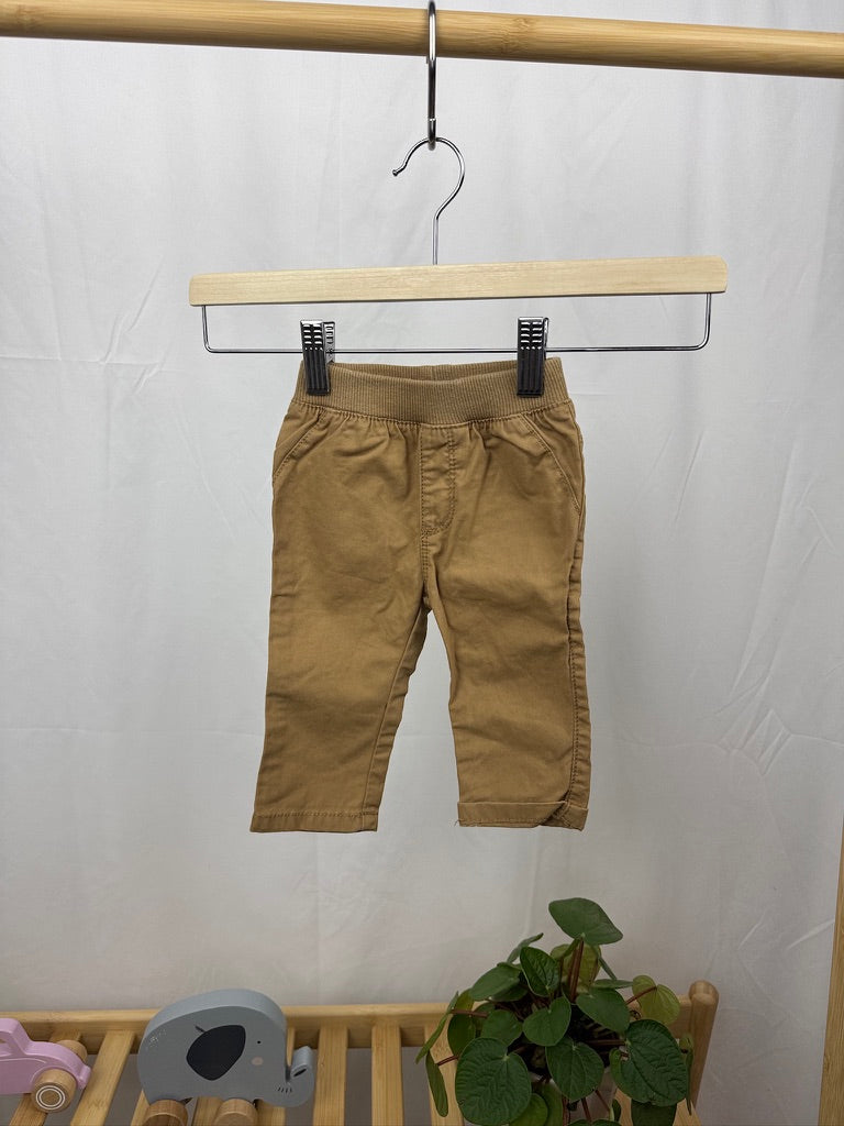Stylové kalhoty v neutrální béžové barvě pro miminka ve věku 0-3 měsíce. Díky elastickému pasu jsou pohodlné a snadno se oblékají, zatímco lehký a prodyšný materiál poskytuje maximální komfort během celého dne. Praktické kapsy dodávají kalhotám klasický vzhled. Skvělý univerzální kousek, který se hodí k tričkům, bodýčkům i svetříkům na jakoukoliv příležitost.