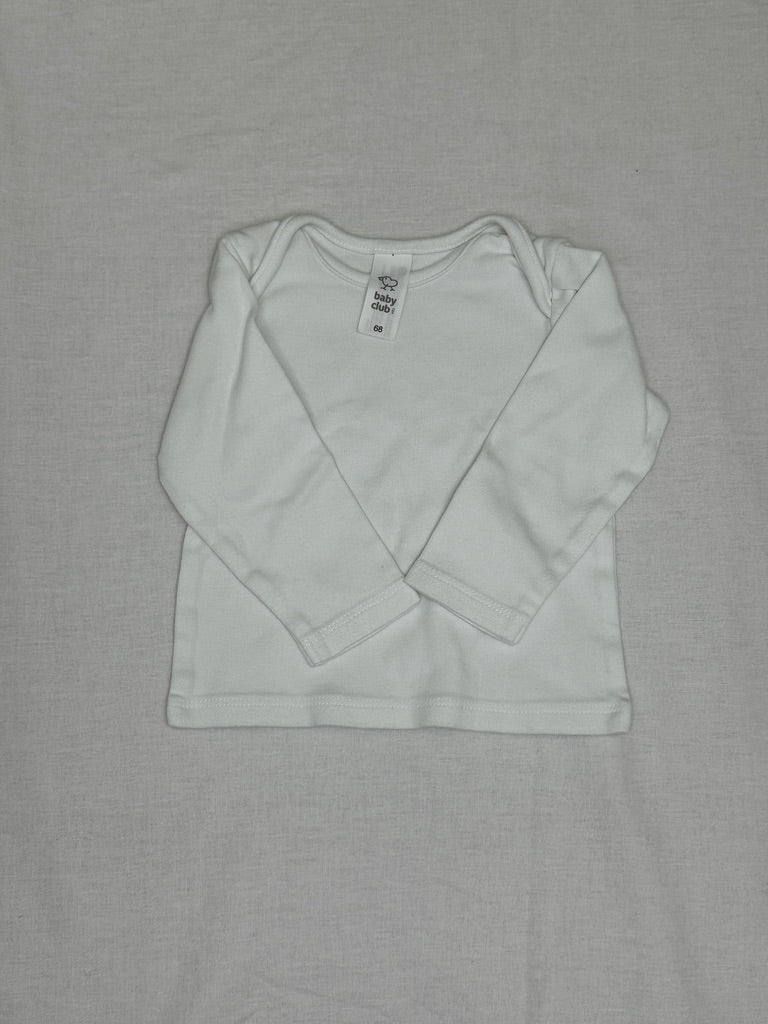 Jednoduché bílé triko s dlouhým rukávem značky C&A ve velikosti 68 je vyrobeno z měkké bavlny, která je šetrná k dětské pokožce. Tento univerzální kousek je ideální pro každodenní nošení, snadno kombinovatelný s dalšími kousky oblečení. Díky neutrální barvě je vhodné pro chlapečky i holčičky.
