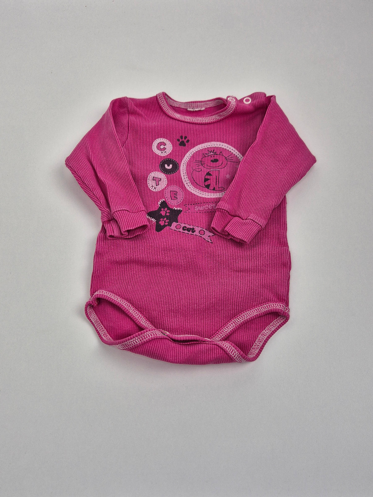 Příjemné žebrované body v sytě růžovém odstínu, který krásně oživí dětský šatník. Měkký bavlněný materiál je šetrný k citlivé pokožce a pohodlný na celodenní nošení. Roztomilý potisk s kočičkou a hravými detaily dodává bodýčku veselý vzhled, zapínání na ramínku usnadní oblékání i přebalování.