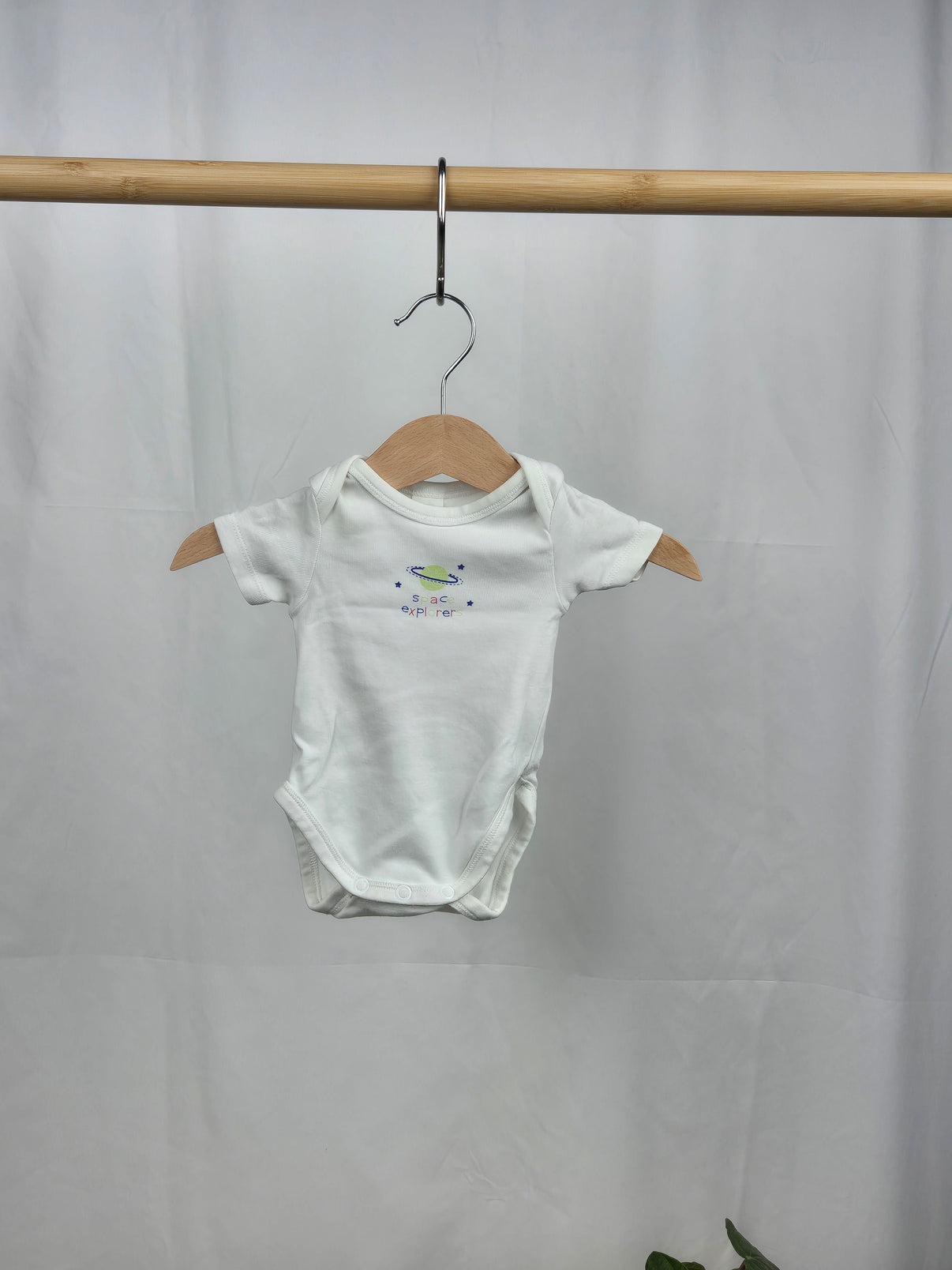 Jednoduché a pohodlné body s krátkým rukávem značky C&A ve velikosti 56. Na přední straně je jemný potisk s motivem planety a nápisem „Space Explorer“, který dodává body hravý a moderní vzhled. Vyrobeno z měkkého materiálu, který je příjemný k pokožce novorozenců. Praktické zapínání na patentky mezi nožičkami usnadňuje oblékání a přebalování. Univerzální kousek vhodný pro chlapečky, ideální na každodenní nošení. Perfektní doplněk do dětské výbavy.