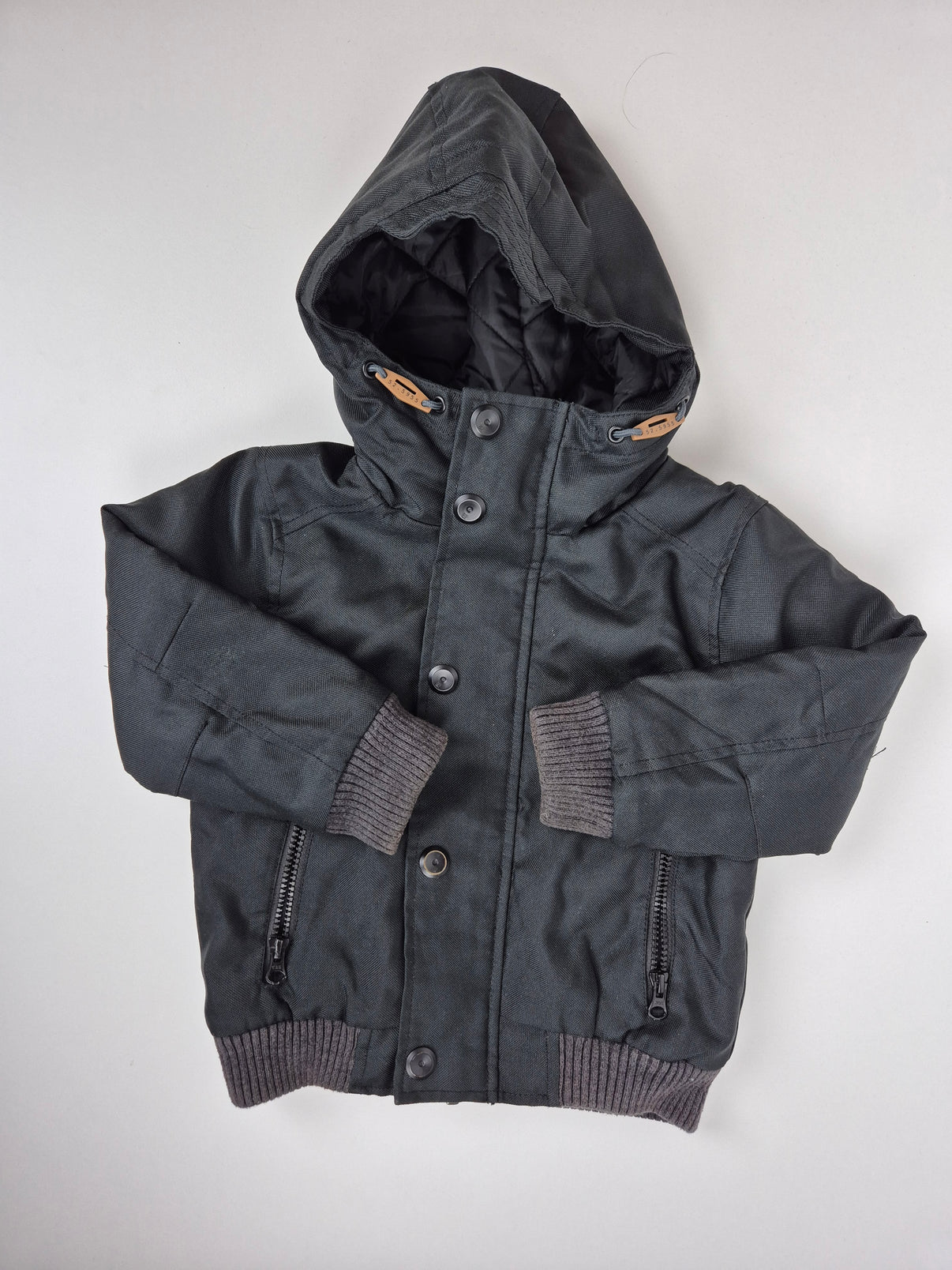 Stylová tmavě šedá bunda Next s kapucí a prošívanou podšívkou je ideálním parťákem do chladnějších dnů. Má praktické zapínání na zip překrytý légou s knoflíky, dvě kapsy na zip a pružné žebrované lemy na rukávech i spodním okraji, které dobře chrání před větrem. Materiál je pevný, ale příjemný na dotek – ideální pro podzim a jaro. Určeno pro chlapečka.