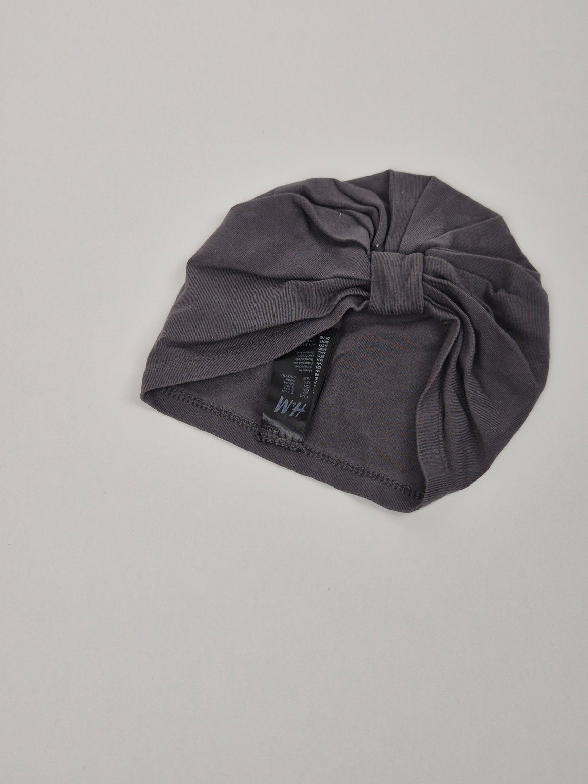 Stylová čepice turban H&M ve velikosti 62/68 v tmavě šedé barvě. Elegantní střih s mašlí na přední straně dodává outfitu šmrnc a je skvělým doplňkem pro malé parádnice. Vyrobena z měkké bavlny s příměsí elastanu, která zaručuje pohodlí a dokonalé přizpůsobení hlavičce.