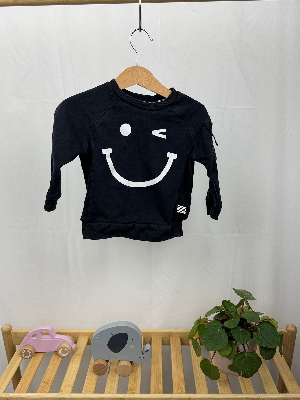 Stylová dětská černá mikina od značky Nutmeg je skvělým kouskem do šatníku každého malého dobrodruha. Přední stranu zdobí velký bílý potisk usměvavého smajlíka s mrkajícím očkem, který dodává mikině hravý...