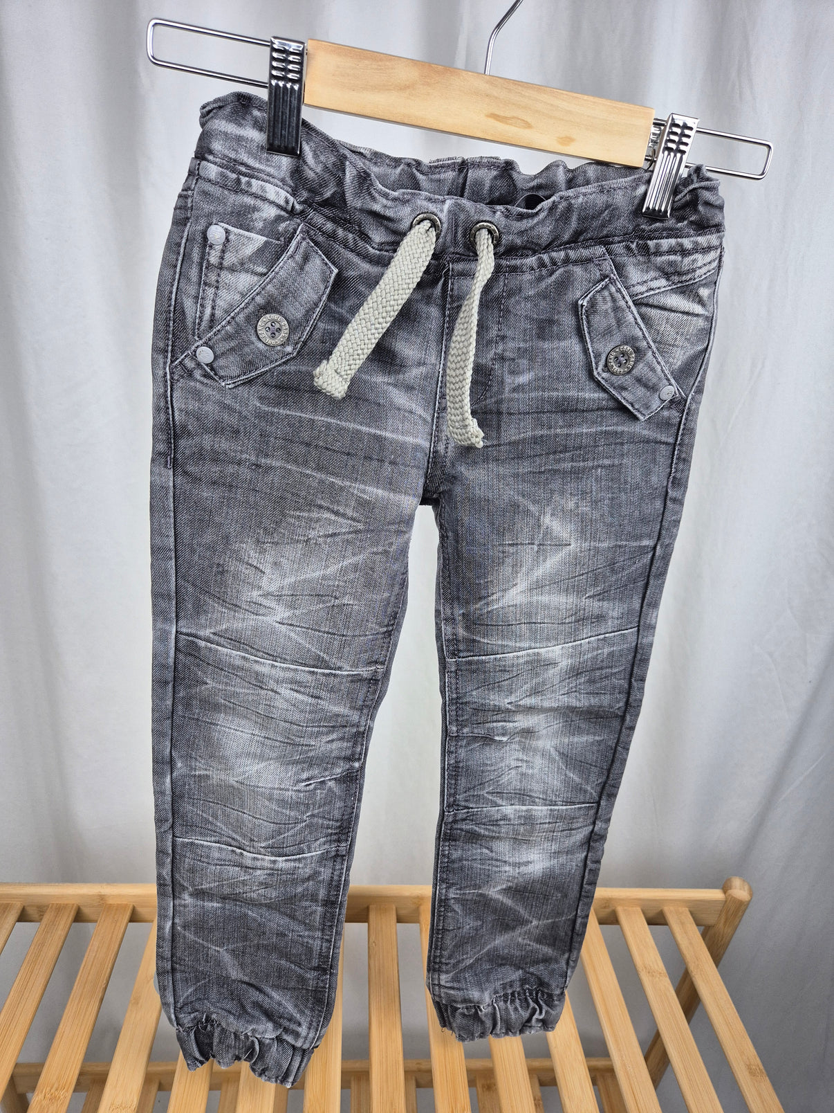 Stylové dětské džíny Kiki&Koko ve velikosti 116 jsou ideální volbou pro malé dobrodruhy. Pohodlný střih s pružným pasem na šňůrku zajistí, že kalhoty dobře sedí a nikde netlačí. Mírně opraný efekt v šedém odstínu dodává džínám moderní vzhled, který se skvěle hodí jak do školy, tak na víkendové výlety. Praktické kapsy vepředu i vzadu poskytují dost místa na drobnosti. Spodní lemy jsou zakončené gumičkou, díky čemuž kalhoty dobře drží u kotníků.