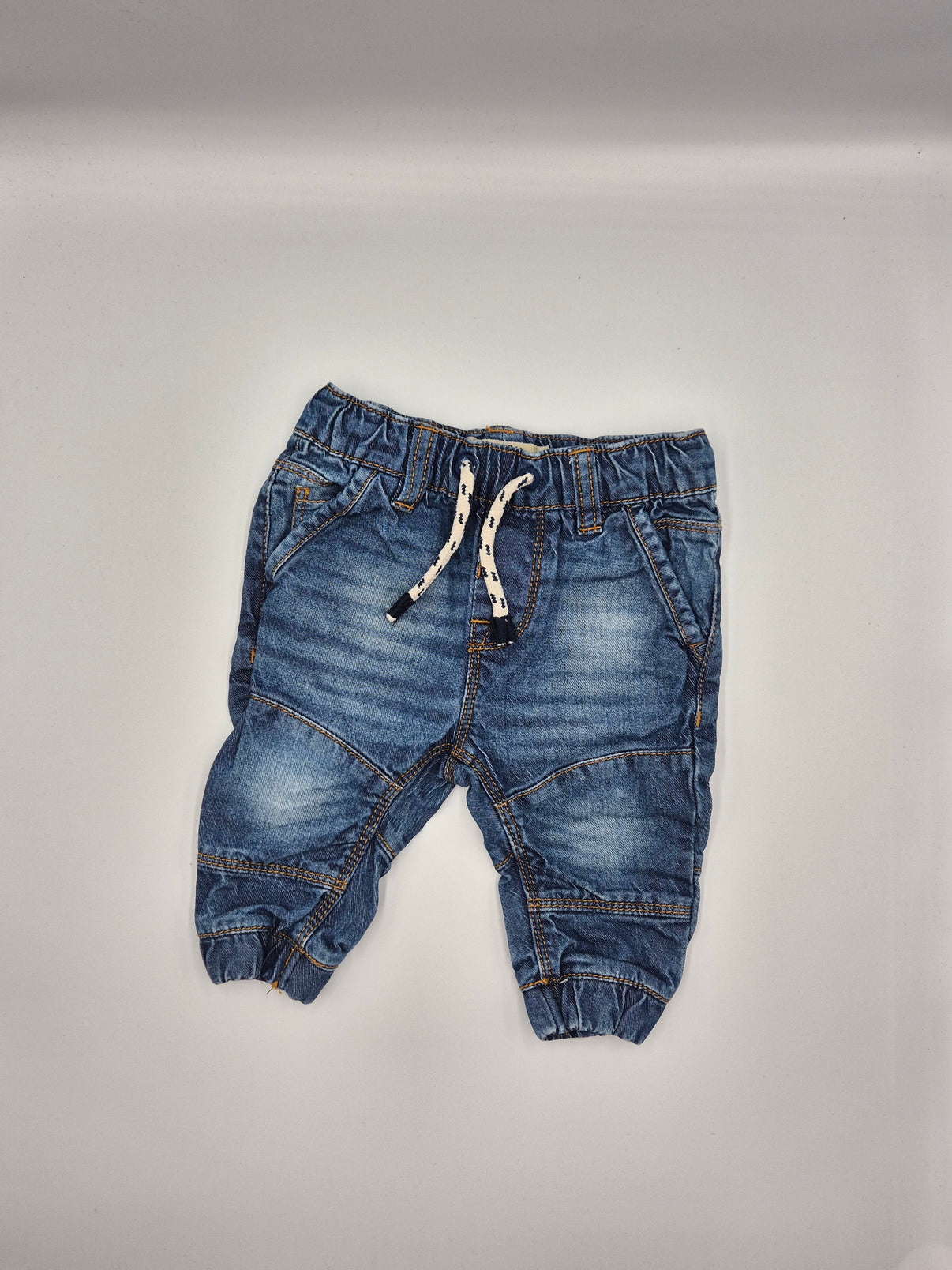 Pohodlné džíny od značky Next v velikosti 62/68, ideální pro nejmenší. Měkký materiál zajišťuje svobodu pohybu a maximální pohodlí během celého dne. Praktický střih s elastickým pasem usnadňuje oblékání a svlékání. Perfektní volba pro každodenní nošení i hraní. Kvalitní zpracování zaručuje dlouhodobou nositelnost i po předání dalšímu dítěti.