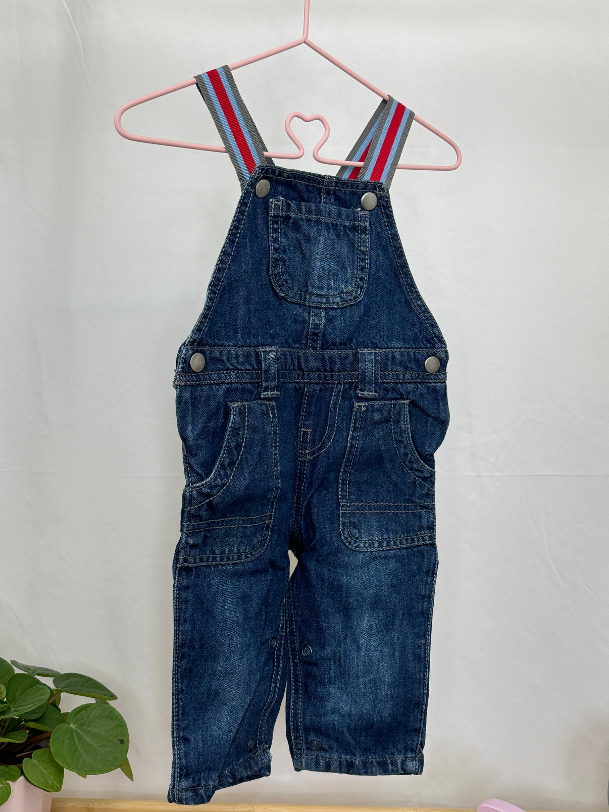 Džínové kalhoty s laclem F&F ve velikosti 74 jsou stylovým a zároveň praktickým kouskem pro nejmenší. Lacl s barevnými pruhovanými popruhy dodává kalhotám originální vzhled, zatímco kapsy a detaily šití působí klasicky. Kalhoty mají pohodlné zapínání na knoflíky a patentky, což usnadňuje oblékání. Skvělé pro každodenní nošení i volnočasové aktivity.