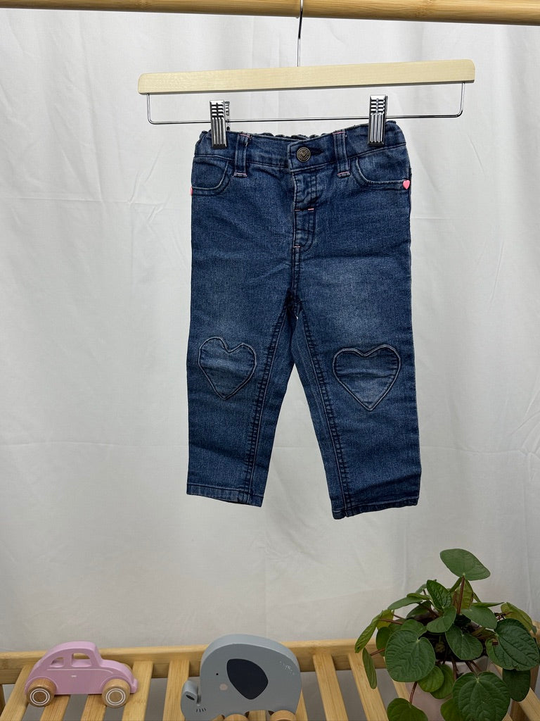 Stylové džíny značky Pepco ve velikosti 86, ozvláštněné krásnými detaily srdíček na kolenou. Tmavě modrý denim s decentním opráním zajišťuje klasický vzhled, který je zároveň praktický pro každodenní nošení. Kalhoty mají pohodlný střih s elastickým pasem a zapínáním na knoflík, což usnadňuje oblékání. Roztomilé růžové detaily a kapsy dodávají kalhotám hravý nádech. Perfektní volba pro malé princezny, které chtějí být stylové a cítit se pohodlně!