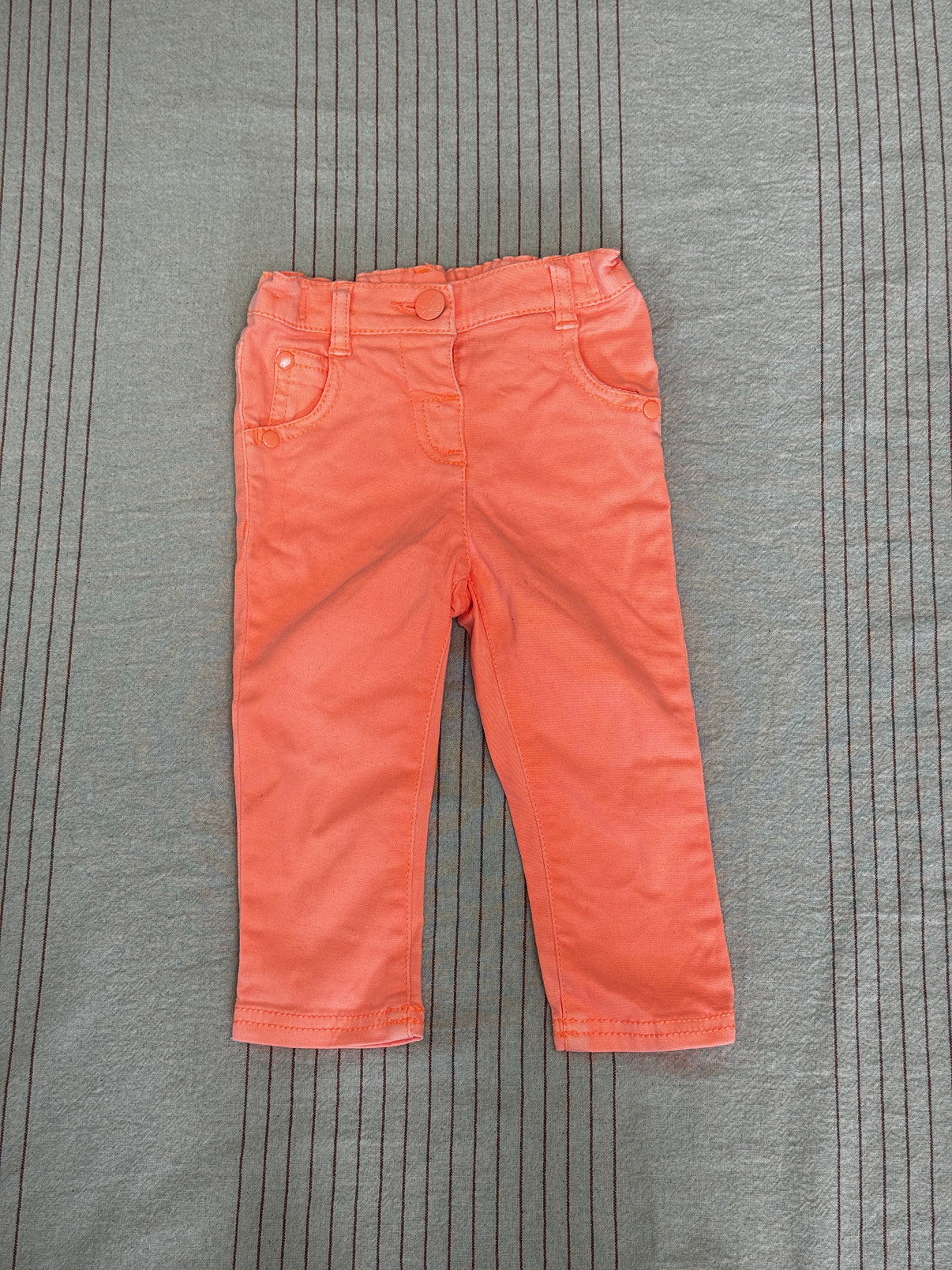 Elastické džíny značky Next ve velikosti 80 jsou perfektní volbou pro malé holčičky, které potřebují pohodlný a stylový kousek do svého šatníku. Kalhoty v nádherném korálově oranžovém odstínu přinášejí svěžest a zářivost do každodenního nošení. Díky elastickému pasu a pružnému materiálu jsou tyto džíny ideální na celodenní hraní i procházky. Praktické kapsy a jednoduchý design zajišťují, že se džíny snadno kombinují s různými vršky. Skvělá volba pro školku, výlety nebo každodenní dobrodružství.