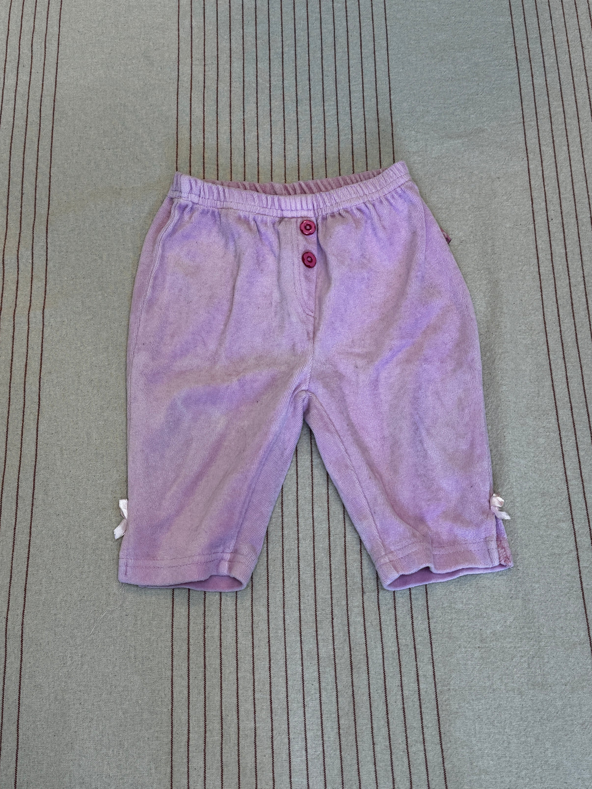 Tyto roztomilé froté kalhoty od značky Ergee ve velikosti 62 jsou ideální pro pohodlí miminka. Mají jemný fialkový odstín a jsou zdobeny dvěma dekorativními knoflíky na přední straně. Na konci nohavic jsou malé mašličky, které dodávají kalhotám stylový vzhled. Elastický pas zajišťuje pohodlné nošení a snadné oblékání. Perfektní volba na běžné nošení pro vaše děťátko.