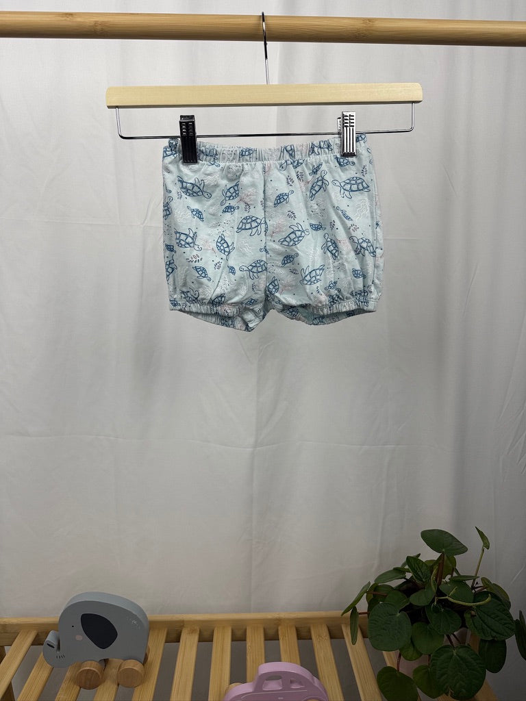 Světle modré kraťásky s jemným motivem želviček a lístků v námořnicky modré barvě. Pohodlný elastický pas zajistí snadné oblékání a pohodlí po celý den. Ideální volba pro teplé letní dny na hraní, do školky nebo na výlety. Materiál je lehký a příjemný na dotek, což zaručuje komfort při každém pohybu. Unisex design je vhodný pro holky i kluky. Skvělá volba pro rodiče hledající praktické a stylové oblečení.