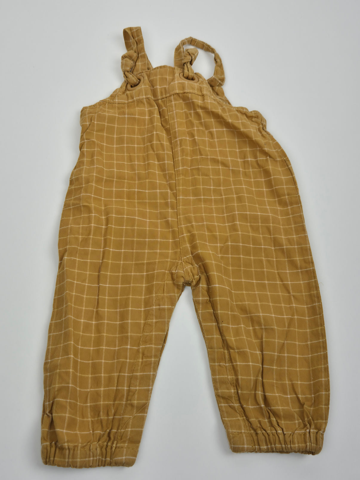 Pohodlné laclové kalhoty Name It ve velikosti 68 v hořčicově žluté barvě s jemným kostkovaným vzorem. Kalhoty mají volnější střih, měkký a vzdušný materiál, ideální na jaro a léto. Ramínka na zavazování umožní snadné přizpůsobení velikosti. Skvělý kousek pro holčičku na běžné nošení i výlety do přírody – stačí doplnit body nebo tričko a vznikne stylový outfit s hravým nádechem