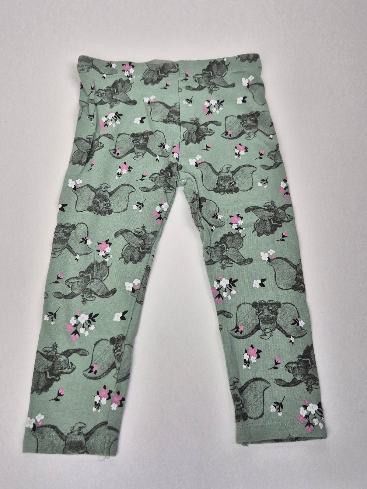 Pohodlné legíny Pepco s motivem Dumba ve velikosti 86. Zelenošedý podklad zdobí jemný potisk sloníka Dumba a drobných kvítků v růžové a bílé barvě. Vyrobené z měkké bavlny s elastanem pro volnost pohybu. Skvělé na běžné nošení i do školky či na doma.