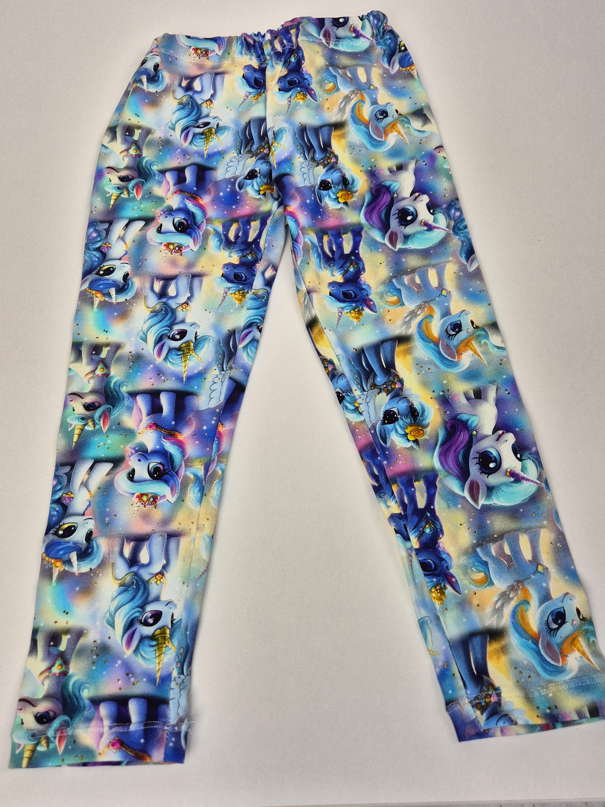 Krásné barevné legíny s motivem jednorožců – perfektní pro všechny malé milovnice kouzelných koní! 🩵