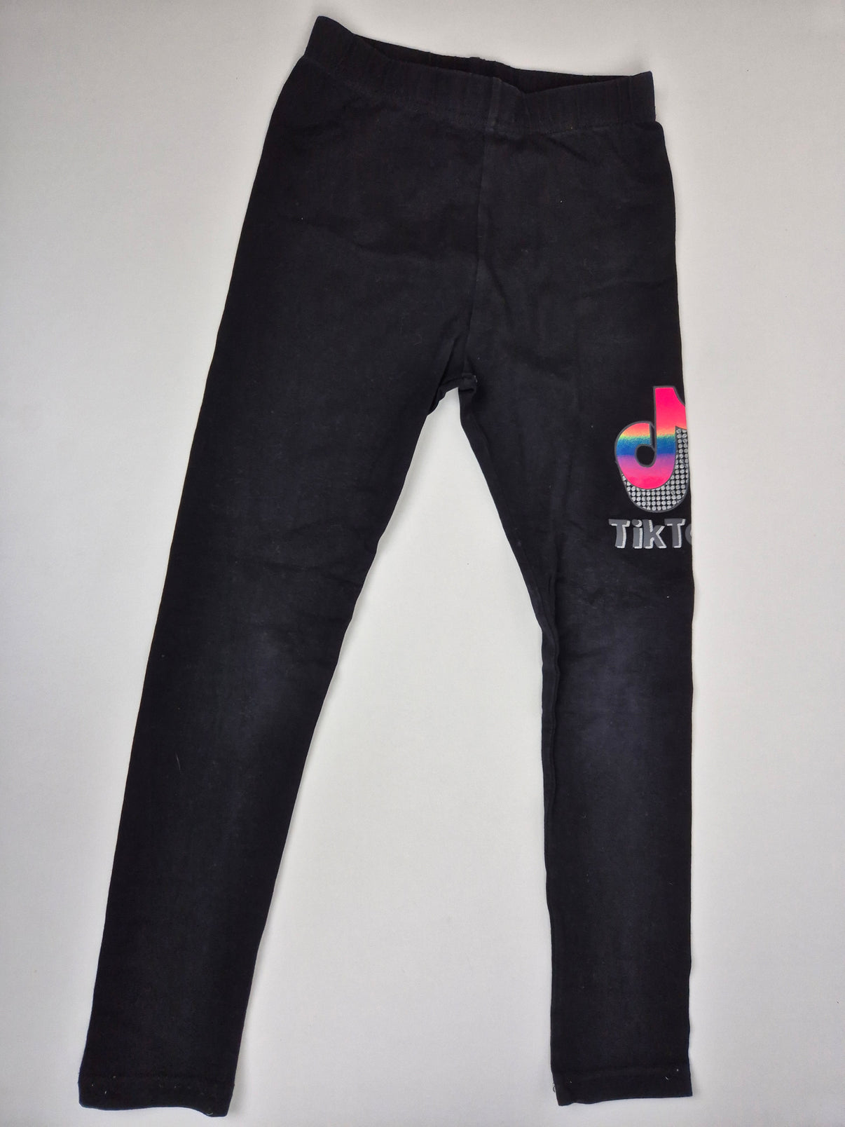 Černé legíny s motivem TikTok značky Kugo v klasickém sytě černém odstínu. Na nohavici zaujme výrazný barevný potisk loga v růžovo-modrých tónech, který dodává moderní a hravý vzhled. Pohodlný střih s pružným pasem je ideální na běžné nošení, do školy, na volný čas i domácí pohodu. Stylový kousek, který ocení především holčička.