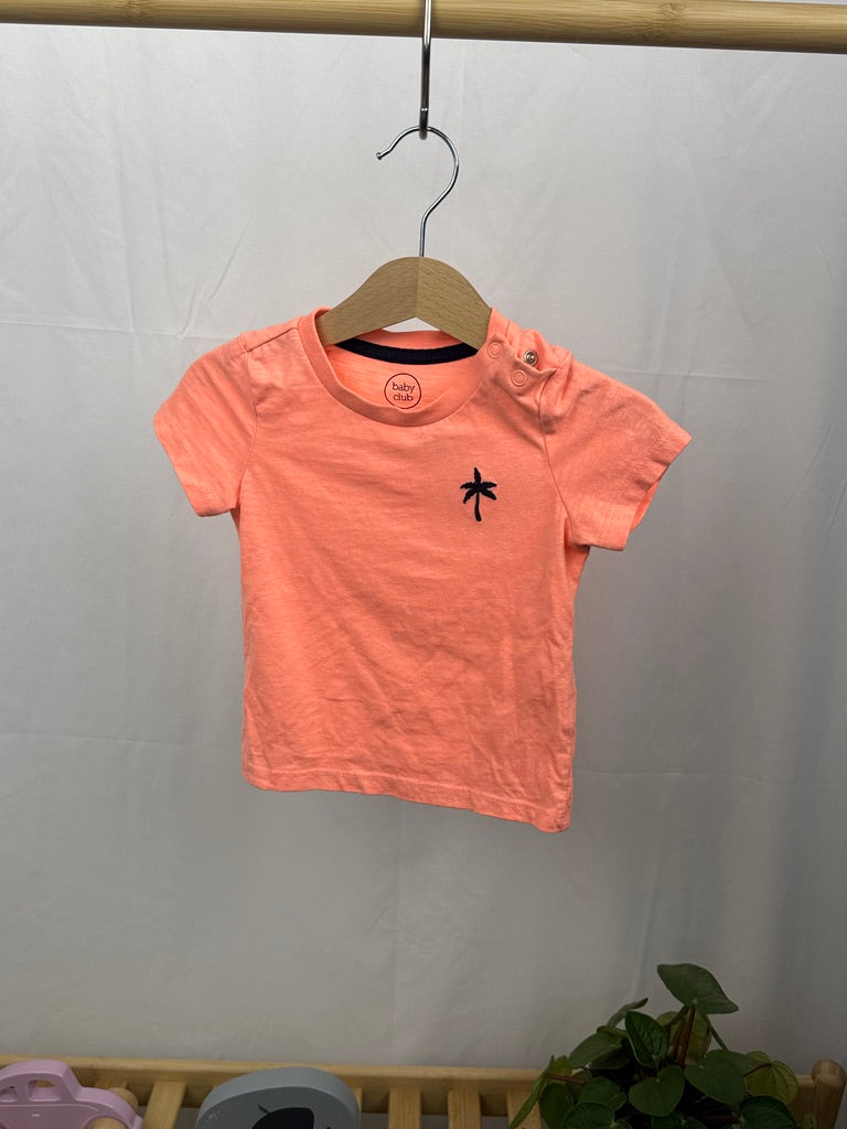Letní tričko s krátkým rukávem ve velikosti 86 je ideální pro teplé dny. Svěží lososová barva dodává tričku veselý vzhled, zatímco jednoduchá výšivka palmy na hrudi přináší prázdninový nádech. Praktické...