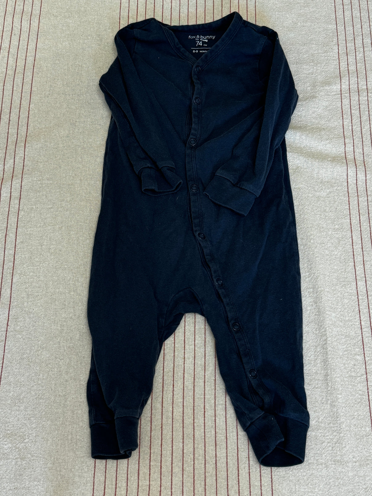 Tmavě modrý overal s dlouhým rukávem od značky Sinsay ve velikosti 74 cm. Tento jednoduchý, ale stylový kousek je vyroben z měkkého materiálu, který poskytuje pohodlí pro malé děti po celý den. Zapínání na patentky po celé délce usnadňuje oblékání a přebalování. Dlouhé rukávy a nohavice s manžetami zajišťují teplo, což činí overal ideální pro chladnější dny i noci. Univerzální barva i design je vhodný jak pro holčičky, tak pro chlapečky. Perfektní na denní nošení doma nebo na spaní.