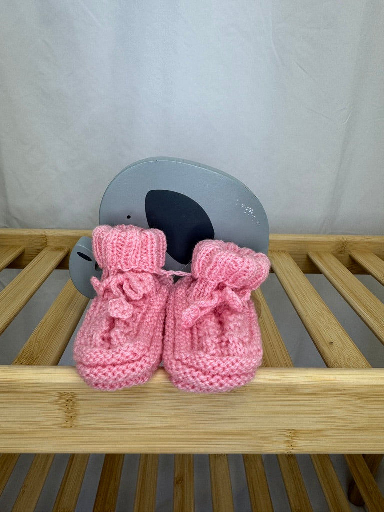 Růžové pletené kojenecké botičky ve velikosti 17 (délka 11 cm) jsou ideální volbou pro miminka na zajištění tepla a pohodlí. Díky jemnému a měkkému materiálu jsou velmi příjemné na nošení, zatímco zavazování na tkaničky zajišťuje, že botičky bezpečně drží na nožičkách. Tyto roztomilé botičky jsou skvělým doplňkem do chladnějších dnů, ať už na procházku nebo na doma.