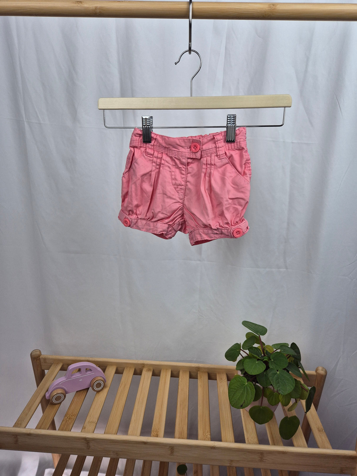 Roztomilé růžové kraťásky NEXT jsou perfektní volbou pro malé princezny! 💕✨ Jemně nařasený střih s ozdobnými knoflíčky na nohavicích dodává kraťáskům hravý a elegantní vzhled. Pružný pas zajistí pohodlí při nošení, zatímco lehký a vzdušný materiál je ideální na letní dny plné dobrodružství. Díky klasickému zapínání na knoflík a zip vypadají jako „dospělácké“ šortky, ale jsou stále maximálně pohodlné. Perfektní doplněk do letního šatníku! 🌸☀️