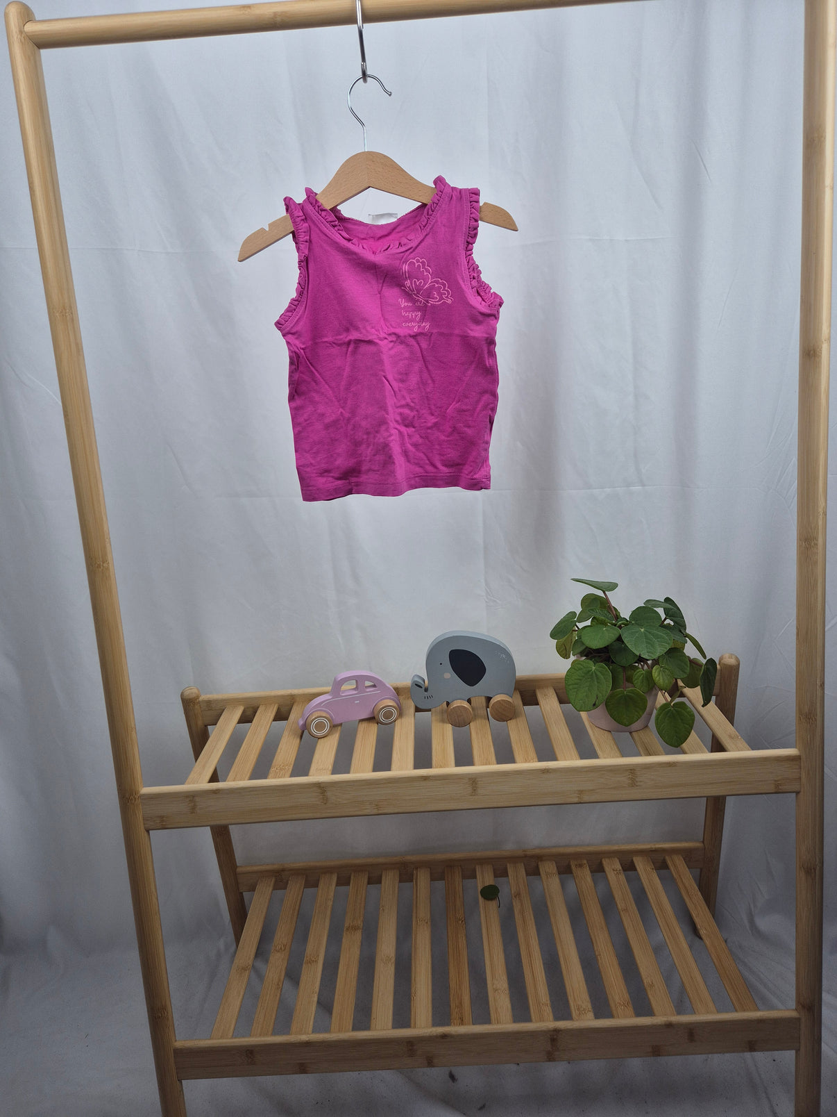 Lehké a pohodlné dívčí tílko od Pepco v krásném sytě růžovém odstínu. Roztomilé volánky na ramínkách dodávají něžný vzhled, zatímco jemný potisk na hrudi přidává hravý detail. Vyrobené z příjemného materiálu, ideální na letní dny, dovolenou nebo běžné nošení. Skvělý kousek pro malé parádnice! 💕☀️