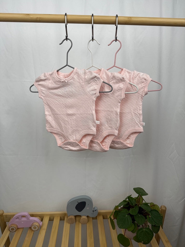 Sada tří body s krátkým rukávem značky Next ve velikosti 56 je ideální volbou pro novorozence. Jemná růžová barva a decentní detaily, jako je drobná mašlička u výstřihu, dodávají těmto body roztomilý vzhled. Vyrobeny z měkkého a prodyšného materiálu, který je šetrný k citlivé pokožce vašeho děťátka. Praktické zapínání na patentky mezi nožičkami zajišťuje snadné oblékání a přebalování. Perfektní volba pro holčičky na každodenní nošení, ať už doma, v kočárku nebo na návštěvách. Pohodlí a styl v jednom!