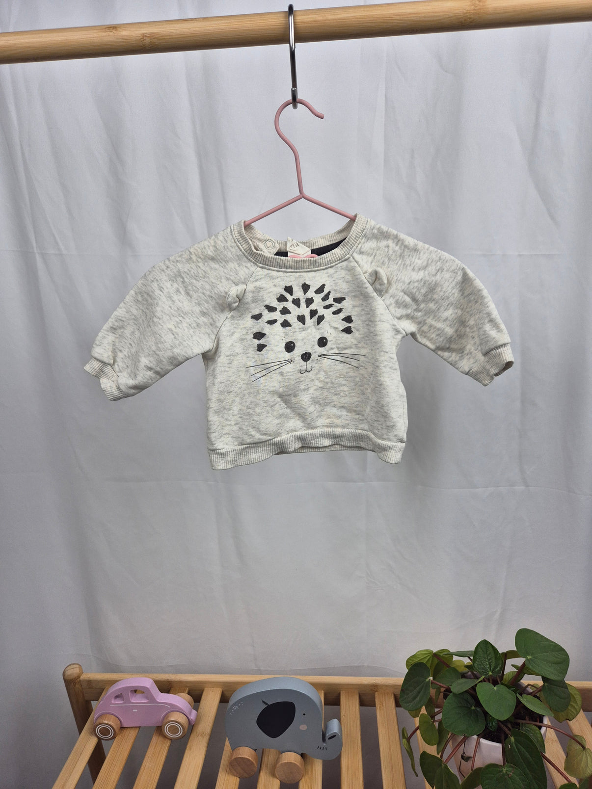 Roztomilá šedá mikina pro novorozence od značky H&M ve velikosti 56. Mikina je vyrobena z měkkého a pohodlného materiálu, který je ideální pro citlivou dětskou pokožku. Zdobí ji veselý potisk ježka na přední straně, který dodává hravý vzhled. Praktické zapínání na rameni usnadňuje oblékání a svlékání. Perfektní volba pro malé chlapečky i holčičky na chladnější dny, ať už na procházky nebo domácí pohodlí. Tento kousek je skvělým základem do šatníku každého miminka!