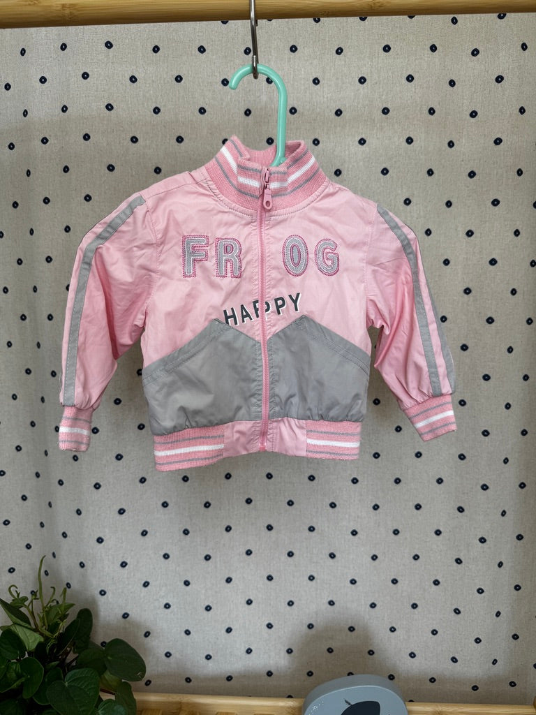 Roztomilá šusťáková bunda značky Frog ve velikosti 62/68 je ideální pro malé princezny. Bunda je v krásném růžovém odstínu s šedými detaily a nápisy "FROG HAPPY". Má praktické zapínání na zip a pružné manžety na rukávech i spodním lemu, což zajišťuje pohodlné nošení. Perfektní volba pro chladnější dny a venkovní aktivity, kdy poskytuje ochranu před větrem a lehkým deštěm. Stylový a funkční kousek do šatníku každé malé slečny.