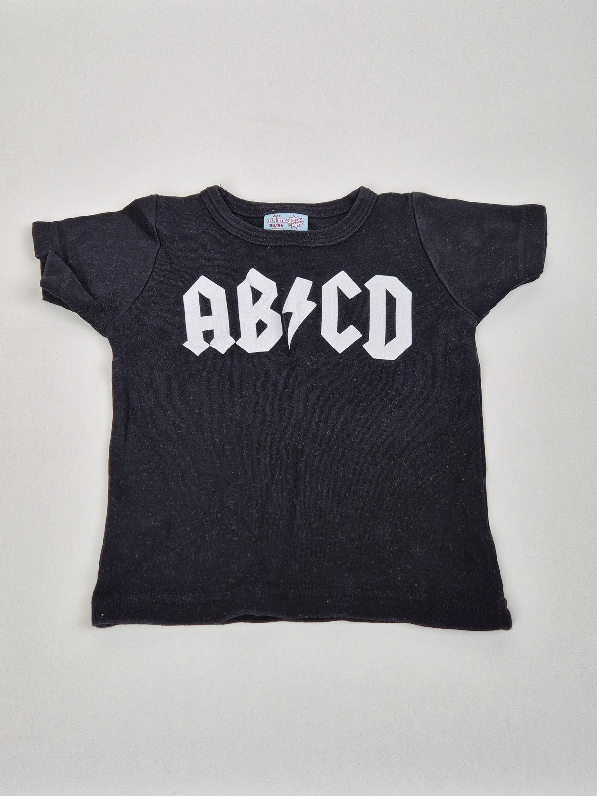Stylové dětské tričko v černé barvě s vtipným potiskem „AB/CD“ inspirovaným známým rockovým logem. Ideální pro malé rockery i rebelky! Tričko je vyrobené z měkké, příjemné bavlny a díky jednoduchému střihu se snadno obléká i nosí. Perfektní volba pro každodenní nošení nebo jako originální kousek do šatníku malého hudebního nadšence. 🎸