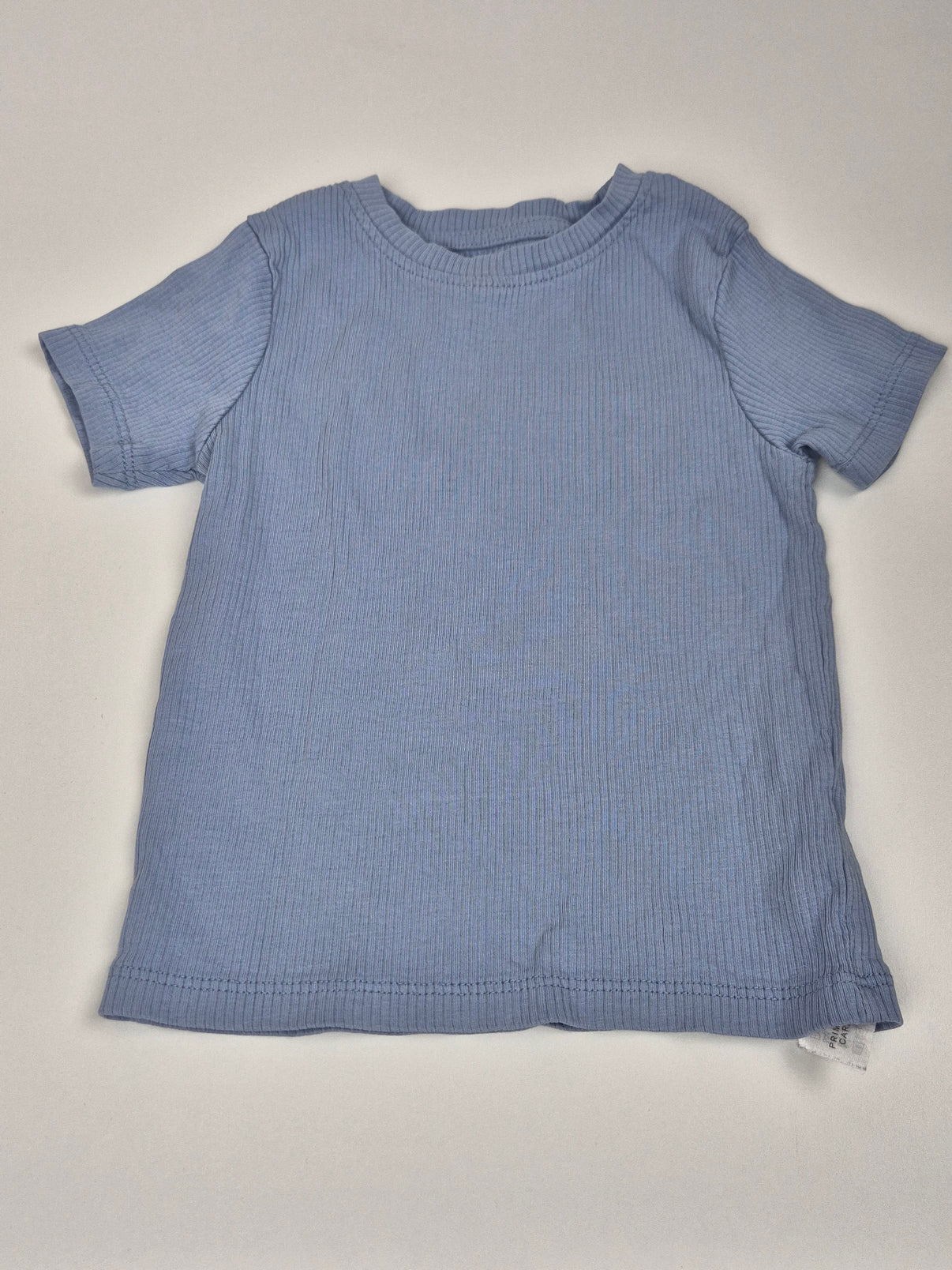Tohle jednoduché tričko značky Primark ve velikosti 92 je v příjemné světle modré barvě s jemnou žebrovanou strukturou. Díky univerzálnímu střihu se hodí jak pro holčičku, tak pro chlapečka – ideální na každodenní nošení do školky i na ven.