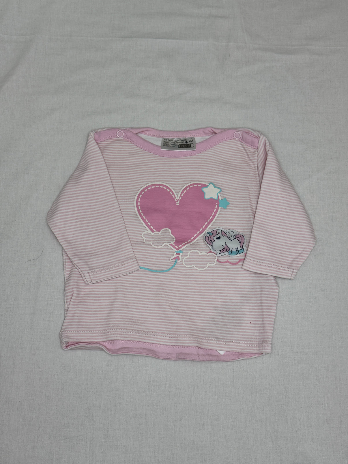 Roztomilé tričko s dlouhým rukávem od značky Ergee ve velikosti 68 je ideální volbou pro malé holčičky. Světle růžový pruhovaný design s motivem srdíčka, hvězdiček a veselého sloníka dodává tričku...
