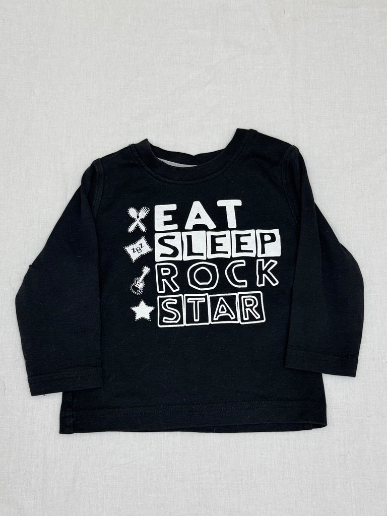 Stylové tričko s dlouhým rukávem od značky Ergee ve velikosti 74. Černé tričko s potiskem „Eat Sleep Rock Star“ je ideální volbou pro malé rockery. Vyrobené z příjemného materiálu, vhodné na každodenní nošení. Praktické a cool, perfektně se hodí jak na doma, tak na ven. Skvělý kousek pro malé chlapce, kteří mají rádi pohodlí a styl!