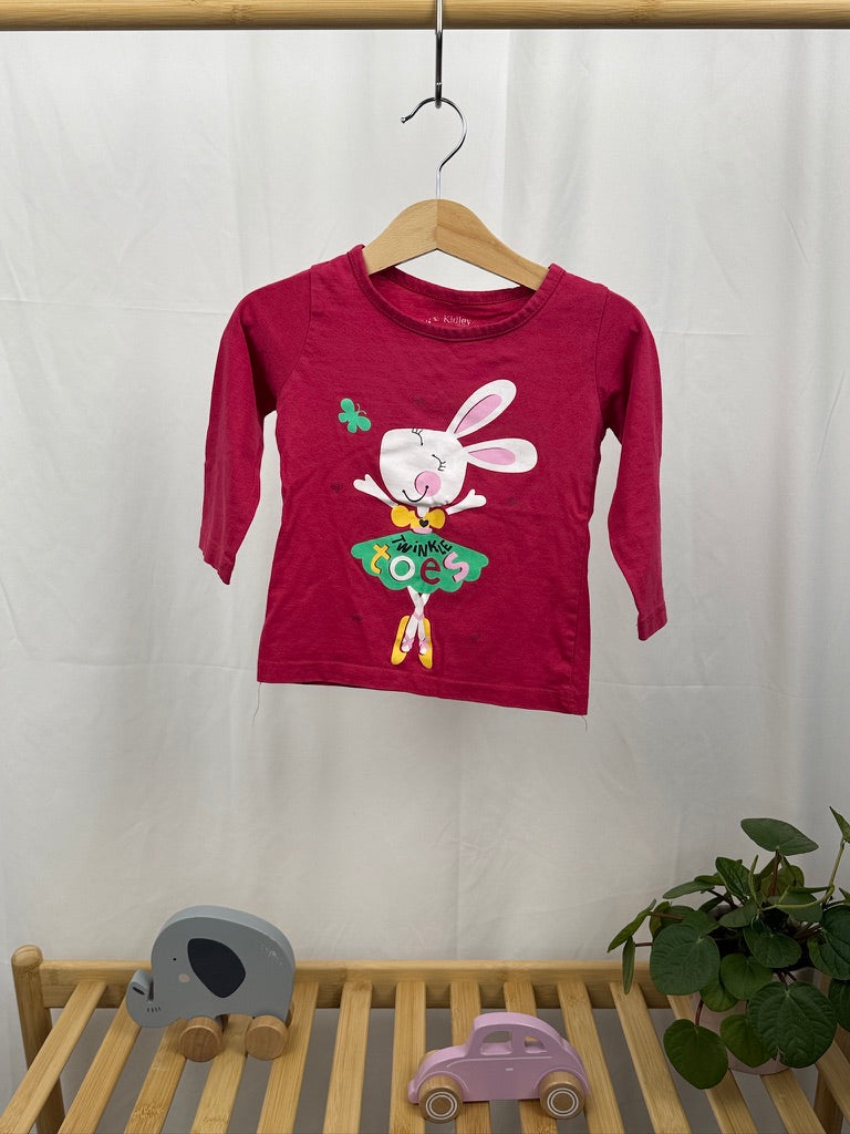 Roztomilé tričko s dlouhým rukávem značky Kidley ve velikosti 86/92. Sytě růžová barva a veselý potisk tanečního zajíčka přidávají tomuto kousku hravost a styl. Tričko je vyrobeno z příjemného a pohodlného materiálu, ideálního pro každodenní nošení. Praktický střih s kulatým výstřihem poskytuje snadné oblékání i pohodlí během celého dne. Perfektní pro malé slečny, které milují zábavné motivy a pohodlnou módu!